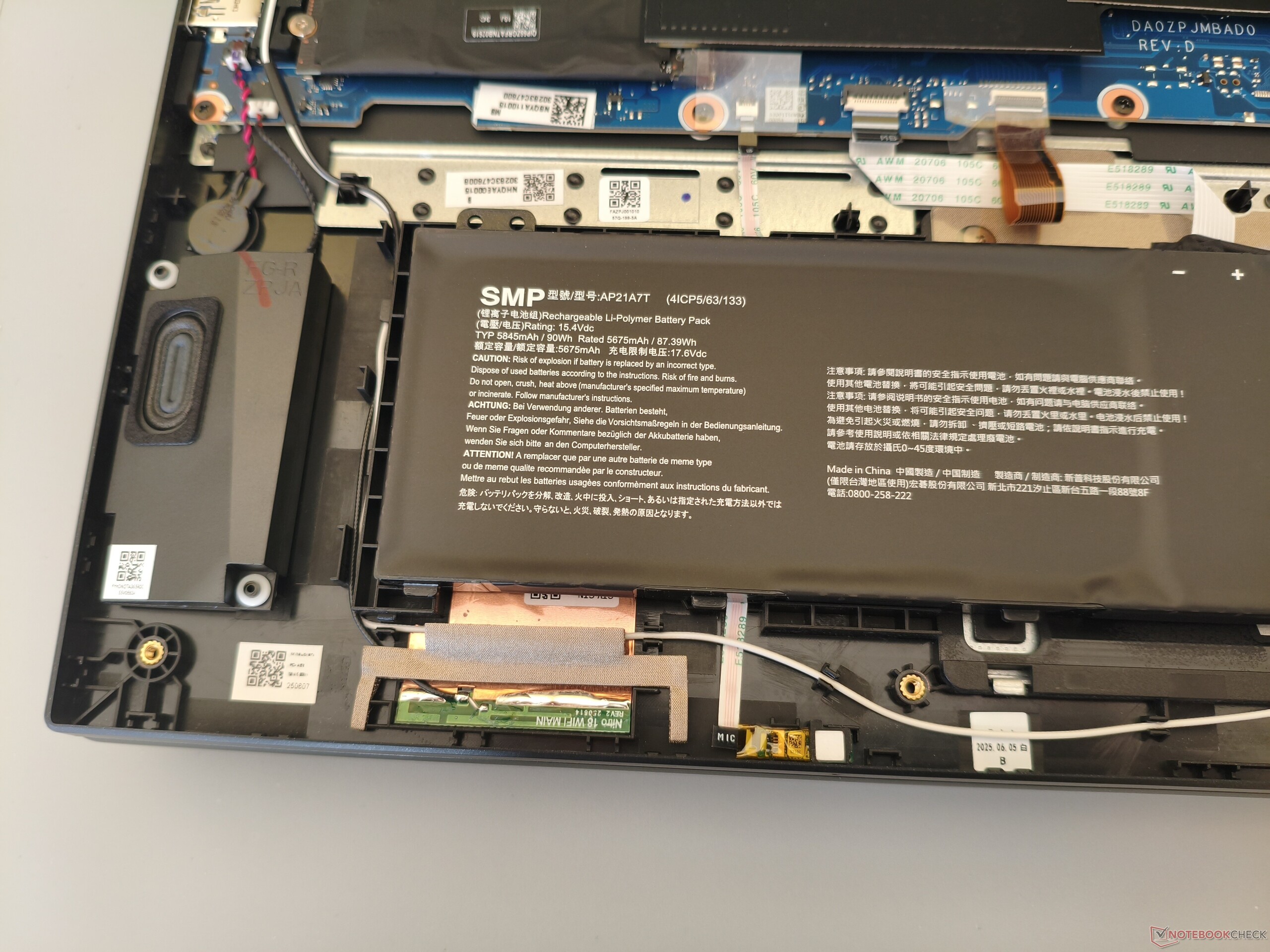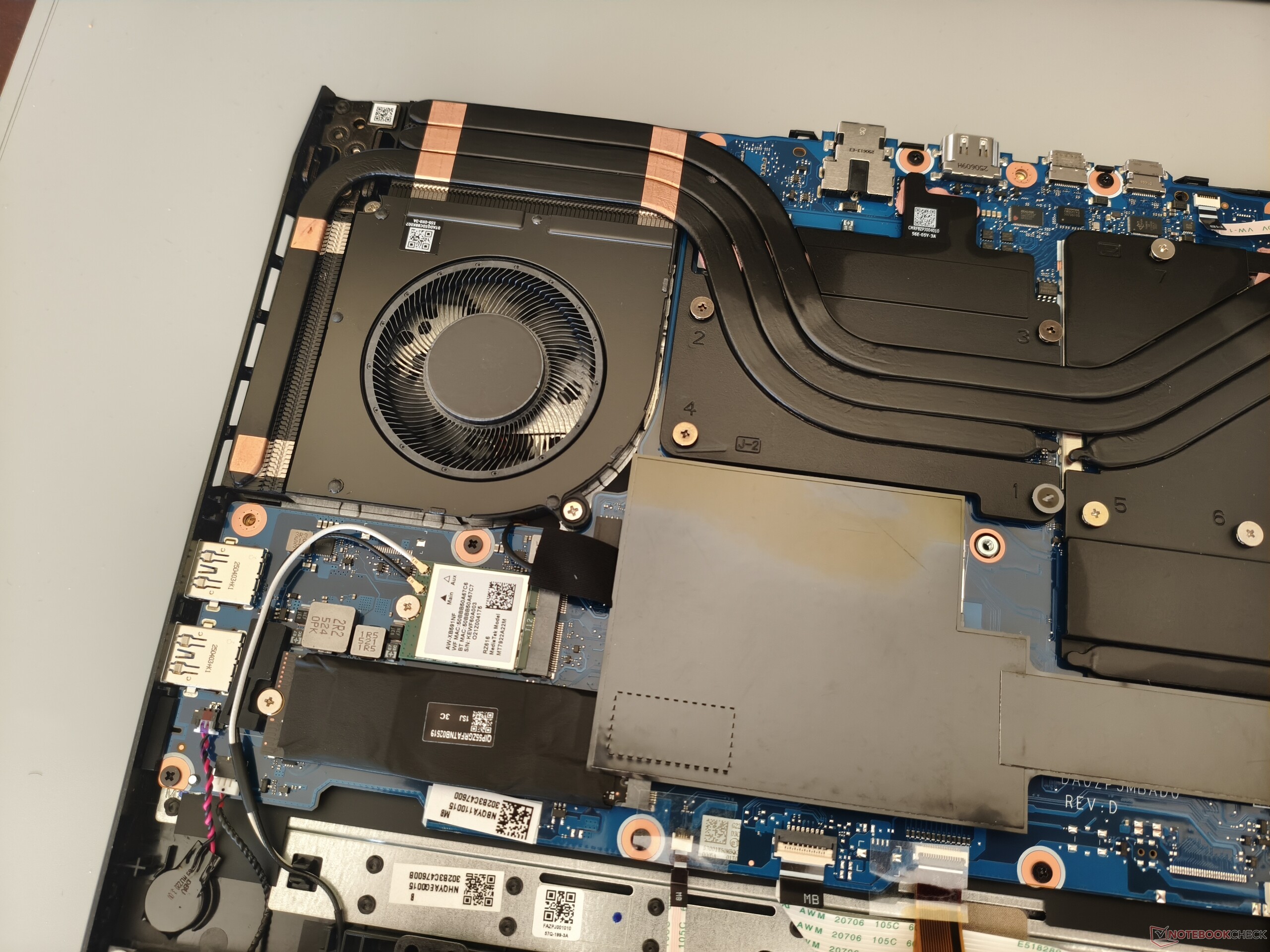 A MediaTek vezeték nélküli modulja (Wi-Fi 6E) különösen jól teljesít a vétel szempontjából. A Full HD felbontásnak köszönhetően a webkamera valamivel élesebb, mint sok más játékos laptopon, de még így sem igazán lenyűgöző. A belső részekhez való hozzáféréshez 10 Phillips-csavart kell eltávolítani. Képeinkből kiderül, hogyan néz ki a motorháztető alatt.