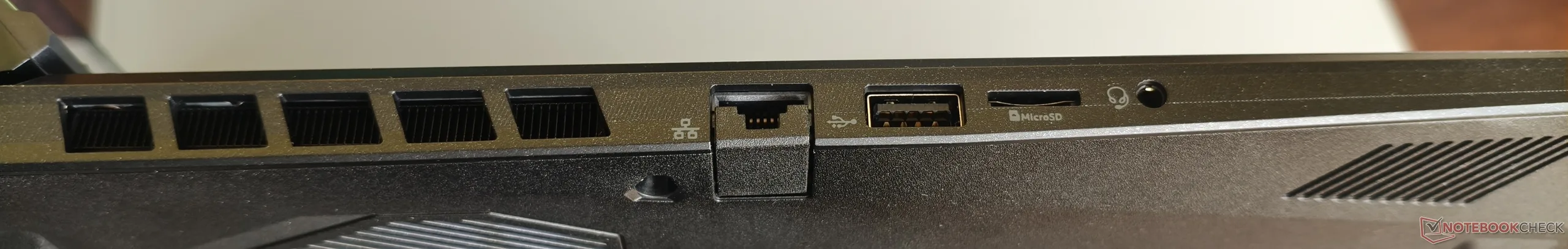 Bár a vásárlóknak Thunderbolt nélkülözniük kell a Thunderboltot, legalább egy USB 4 port van a fedélzeten. Általánosságban elmondható, hogy a 18 hüvelykes laptop két Type-C és három Type-A portot kínál, ami elegendő. Van még egy audiocsatlakozó, egy HDMI-kimenet, egy microSD-olvasó, egy RJ45 LAN-port és egy nyílás a Kensington-zárak számára.