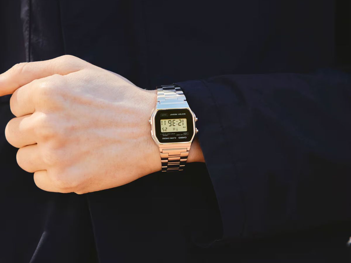A Casio A158WEA téglalap alakú kijelzőjén a dátum és a hét napja mellett 12 vagy 24 órás formátumban is megjeleníthető az idő. Olyan eszközökkel rendelkezik, mint a napi ébresztő, az óránkénti időjelzés és az 1/100 másodperces stopperóra. Ráadásul a könnyű (45 g/~1,6 oz) óra LED háttérvilágítással megvilágítható, vízálló a mindennapi használathoz, és körülbelül hét évig kell működnie, mielőtt az elemet ki kellene cserélni.