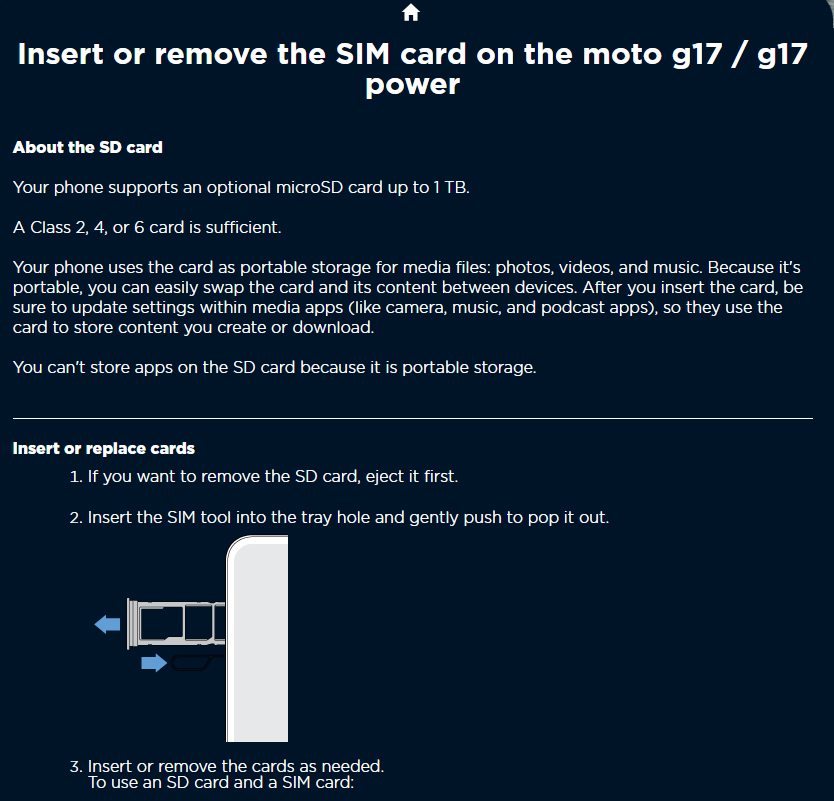 Érdekes módon maga a márka is megerősítette az egyik legfontosabb specifikációt a támogatói oldalon keresztül. A hivatalos GYIK oldal a Moto G17-ről megosztja, hogy a telefon microSD kártyahelyet tartalmaz, amely akár 1 TB-os memóriakártyát is támogat. Ez az oldal megerősíti továbbá, hogy a Motorola a nem Power változat mellett egy G17 Power modellt is kínál majd, de az előbbiről konkrét részletek nem állnak rendelkezésre.