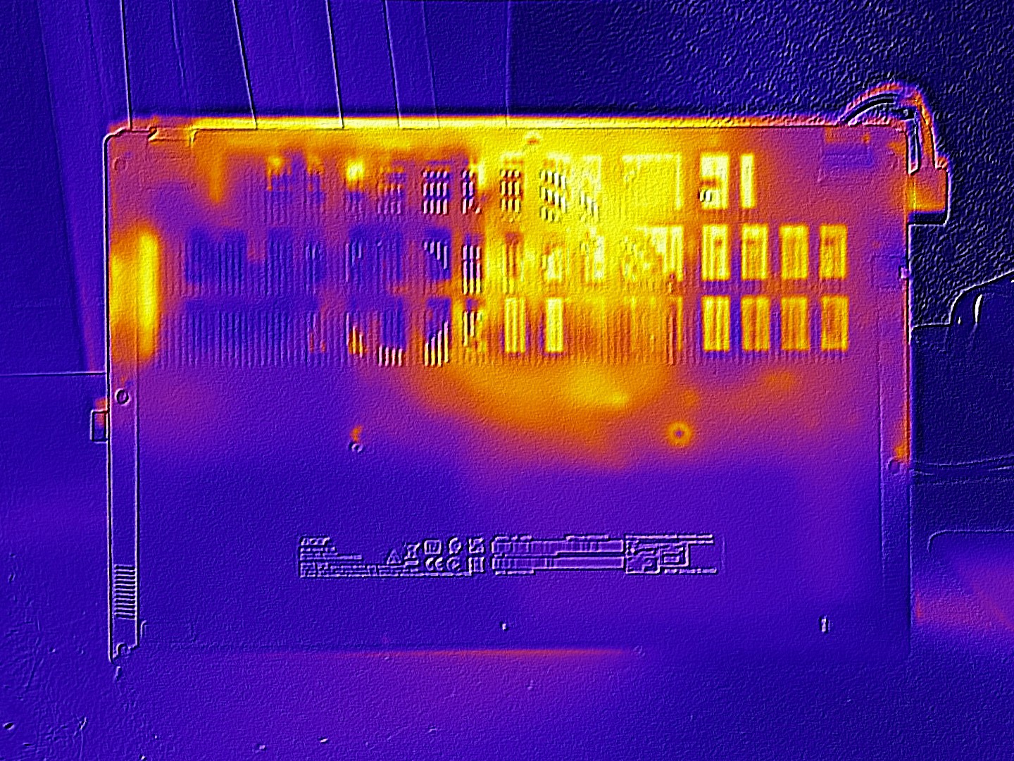 (-) A felső oldalon a maximális hőmérséklet 46 °C / 115 F, összehasonlítva a 40.4 °C / 105 F átlagával , 21.2 és 68.8 °C között a Gaming osztálynál.