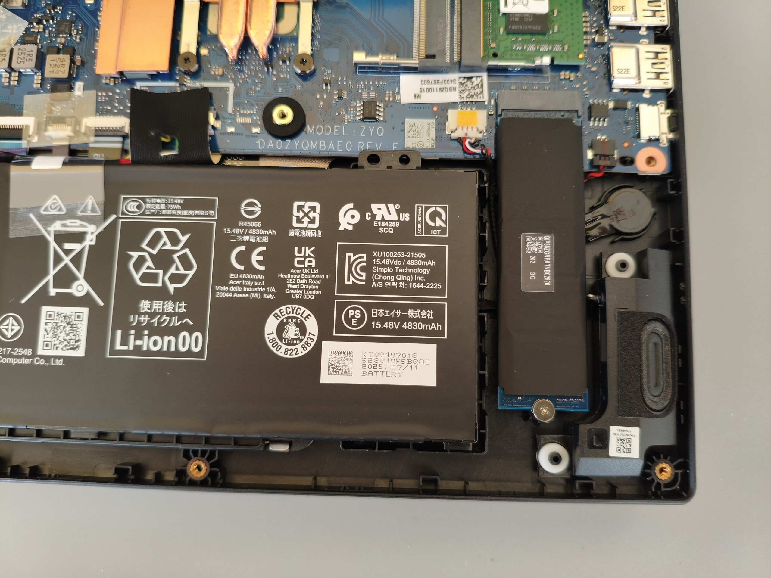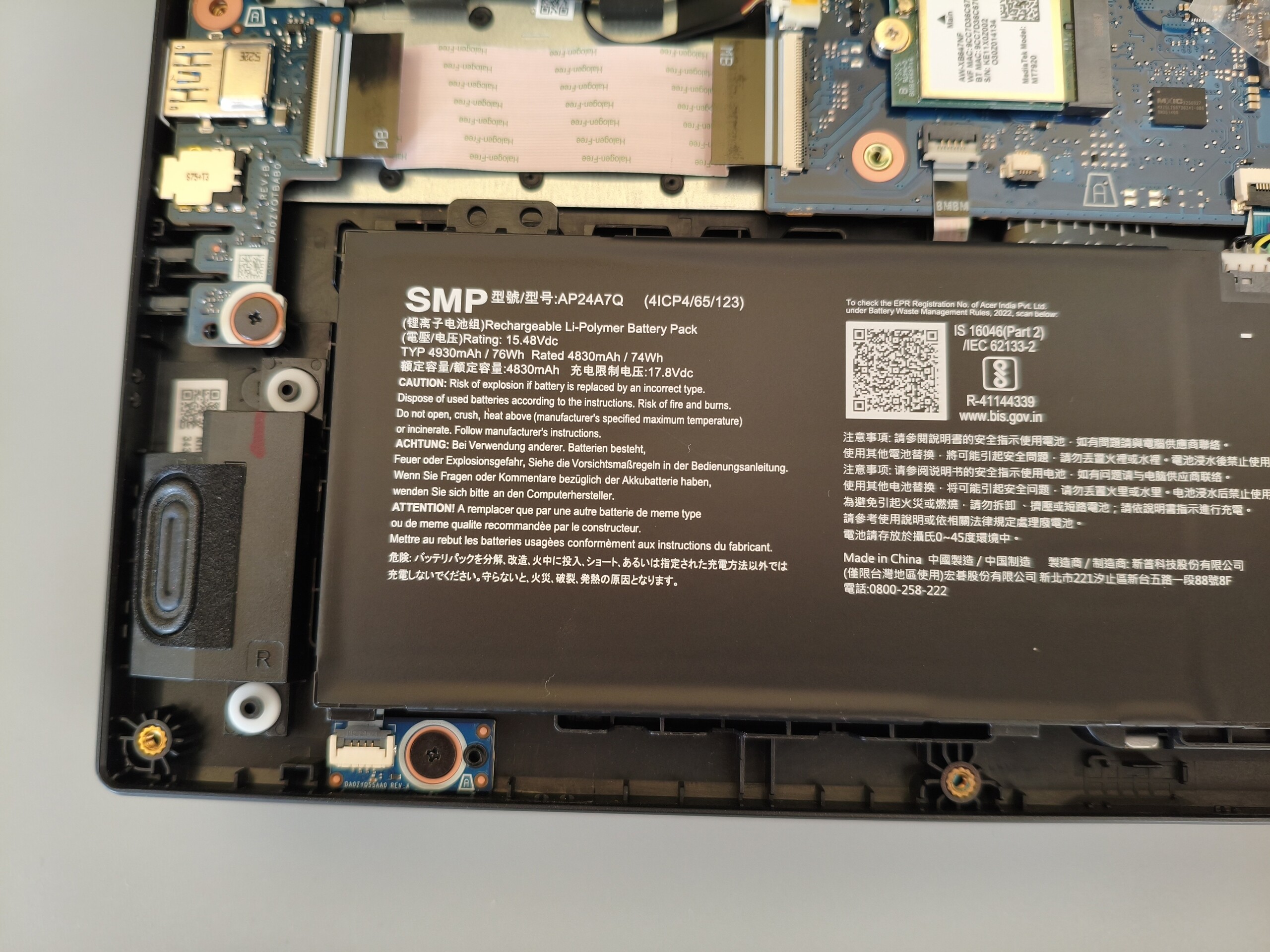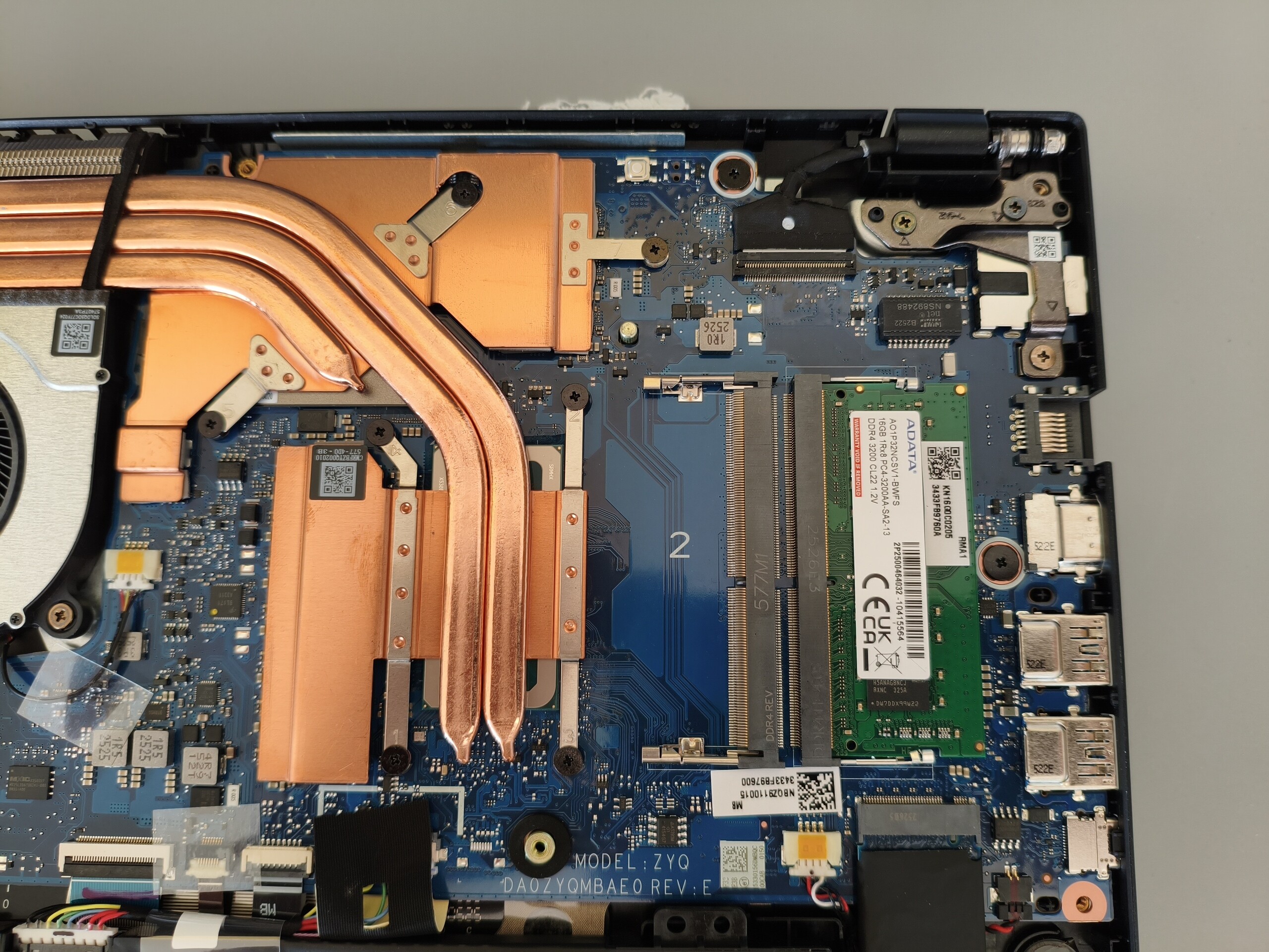 A kártyaolvasó hiányától eltekintve a portválaszték kevés kritikára ad okot. A Gigabites LAN-portot, a HDMI-kimenetet és a 3,5 mm-es audiocsatlakozót három USB-A port és egy Thunderbolt 4 csatlakozó egészíti ki. Egy Kensington-záras nyílás is helyet kapott. A Wi-Fi 6E modul közepes teljesítményt nyújt, és a meglehetősen lágy webkamera is hasonlóan kevéssé meggyőző eredményeket produkál. A belső részekhez való hozzáféréshez 11 Phillips-csavar eltávolítása szükséges. A belső térről készült képek lejjebb találhatók.