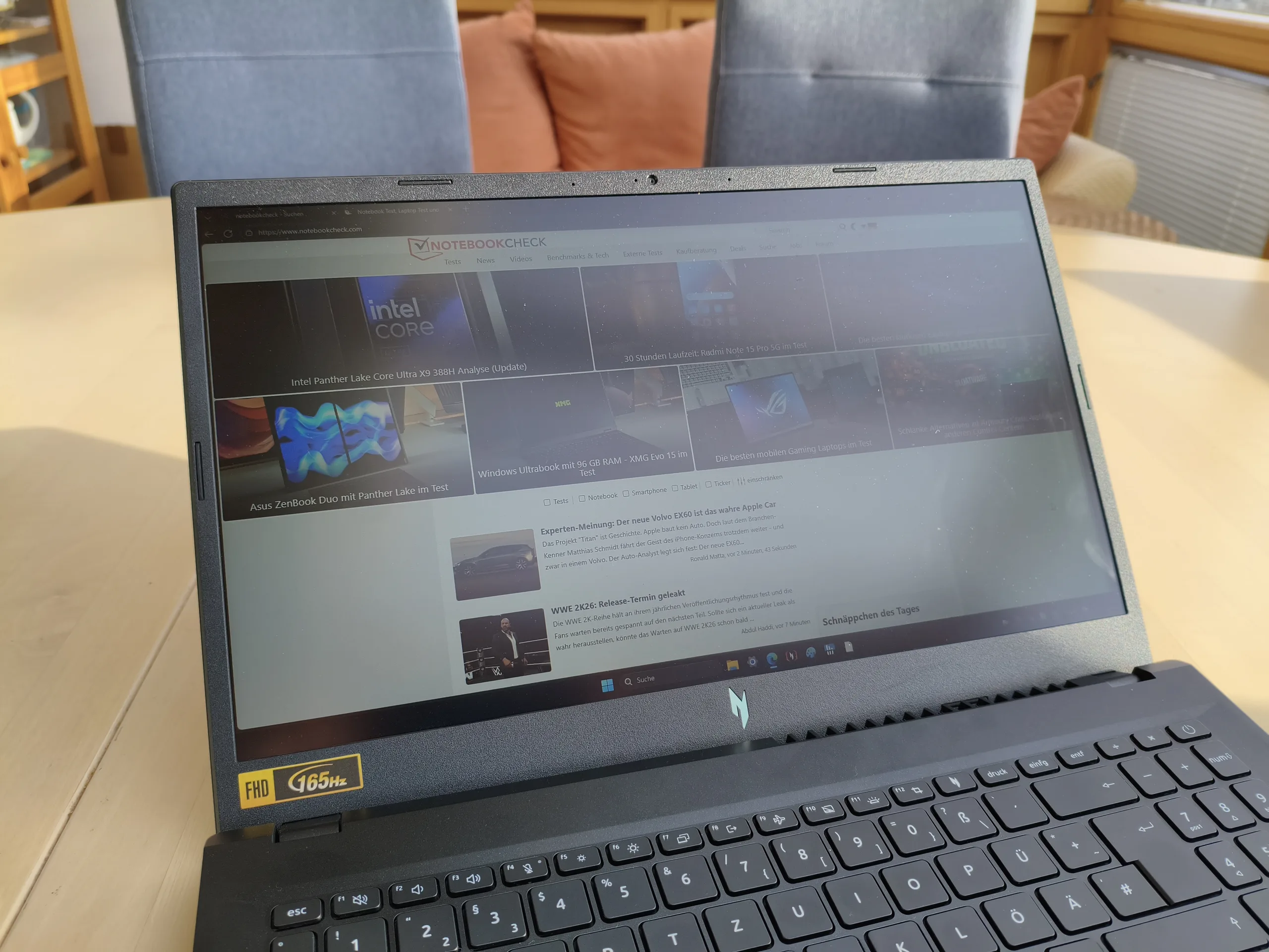 Sajnos a korlátozott színlefedettség még 2026-ban is probléma marad a megfizethetőbb játékra szánt laptopok esetében. A Cyborg 15-höz és a Victus 15-höz hasonlóan a Nitro V 15 is a 70%-os sRGB-határ alatt marad, ami meglehetősen halvány képet eredményez. A fényerősséggel kapcsolatban pozitívabb az ítélet. Bár a 347 cd/m²-es átlag nem számít kiemelkedőnek, a legtöbb versenytárs elmarad ettől az értéktől. A többi érték tipikus IPS-panelre jellemző, legyen szó akár a 0,31 cd/m²-es fekete szintről vagy az 1232:1 kontrasztarányról. Ugyanez nagyrészt érvényes a betekintési szögekre is.