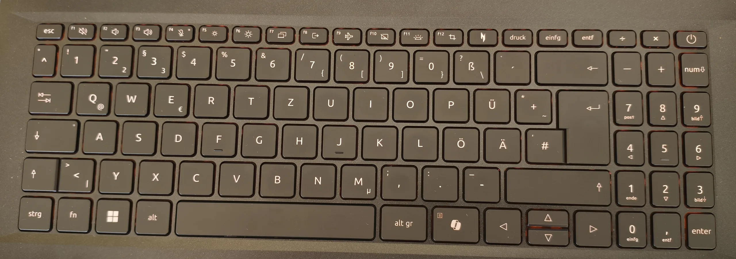 A billentyűzetkiosztással nem voltunk teljesen elégedettek. A kritikák közé tartozik a háromoszlopos numerikus billentyűzet a teljes négyoszlopos elrendezés helyett, valamint a meglehetősen kicsi központi nyílbillentyűk. A gépelési élmény tipikus gumikupolás, ezért semmi különösebben figyelemre méltó. A háttérvilágítás terén is van mit javítani. A narancssárga megvilágítás még a legmagasabb fokozaton sem különösebben fényes. Pozitívum, hogy a 15 hüvelykes laptop egy meglehetősen nagy, 12,6 x 7,8 cm-es érintőpaddal rendelkezik, bár kattintáskor kissé zörgősnek tűnik.