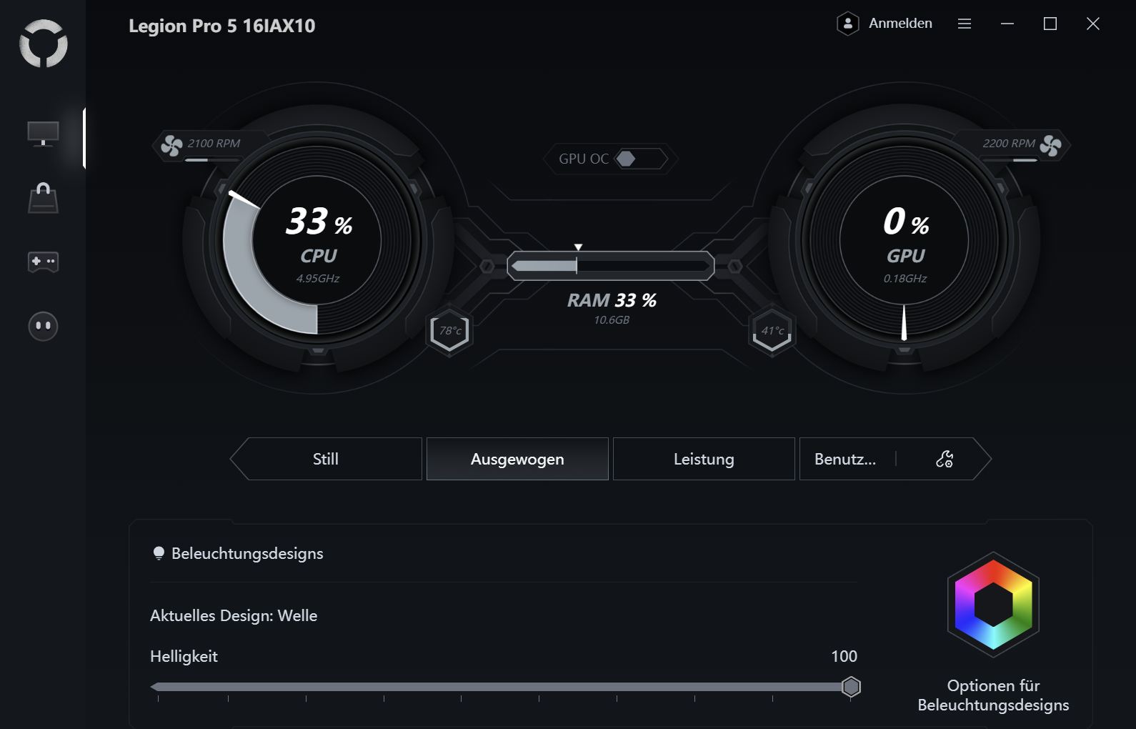 Ahogyan az várható volt, az energiafelvétel alacsonyabb, mint a Ti változat. A versenytársak közül a Legion Pro 5 még mindig elég sokat fogyaszt játék közben - de ez is a legjobb teljesítményűek közé tartozik.