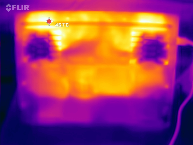 (±) A felső oldalon a maximális hőmérséklet 42 °C / 108 F, összehasonlítva a 40.5 °C / 105 F átlagával , 21.2 és 68.8 °C között a Gaming osztálynál.