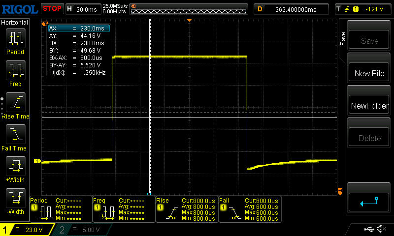 | 1.4 ms ... emelkedés és süllyedés ↘ kombinálva | ↗ 0.8 ms emelkedés | |