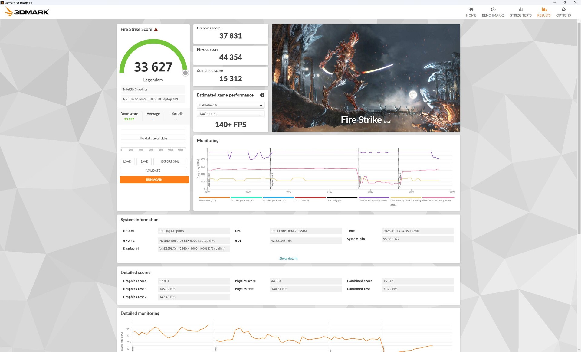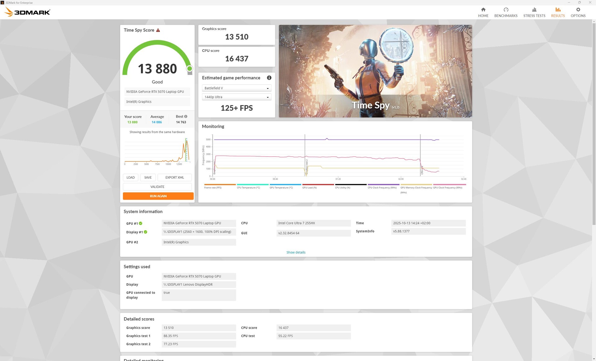 A RTX 5070 Ti változat az egyik leggyorsabb laptop volt ezzel a GPU-val, és ugyanez nagyrészt elmondható a normál RTX 5070-es modellről is - bár az előny a riválisokkal szemben nem olyan nagy. Alienware 16X Aurora még azt is sikerül kissé megelőznie.