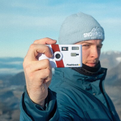 A Flashback One35 V2 első pillantásra úgy néz ki, mint egy analóg 35 mm-es kompakt fényképezőgép, amely nyolc különböző színben kapható, amelyek közül kettő részben átlátszó. Még a csomagolás is retro dizájnú. A kis optikai kereső és a kijelző hiánya elrejti a fényképezőgép digitális részeit.