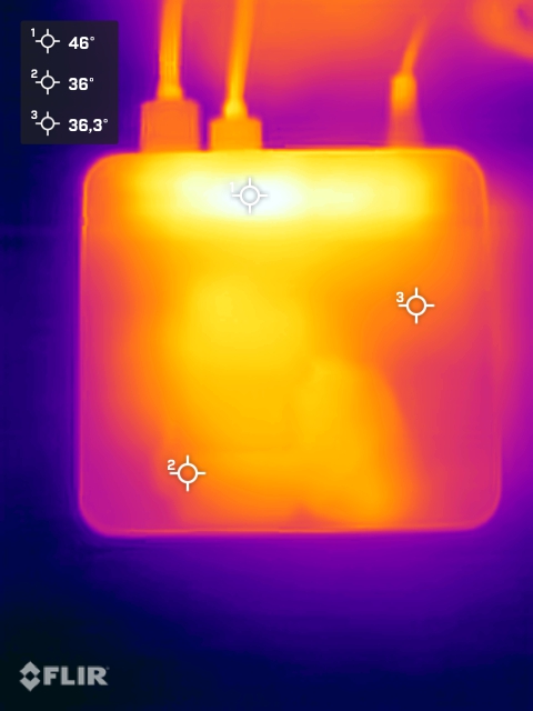 A tesztben a GMKtec NucBox M3 Ultra az Intel Core i7-12700H processzorral nem olyan energiatakarékos, mint a modernebb SoC-kel szerelt összehasonlító eszközök. A konzervatív TDP miatt tesztpéldányunk teljes terhelés mellett csak maximum 60,7 wattal működik. Ez azt jelenti, hogy a 100 wattos tápegység kellően specifikált, és elegendő tartalékot kínál például teljesítmény üzemmódban.