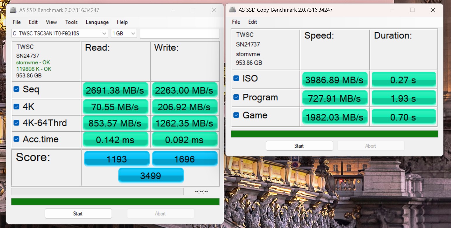 Connectivity - USB 3.x / USB4 / TB - AS SSD Seq Read Test (1GB) | |
