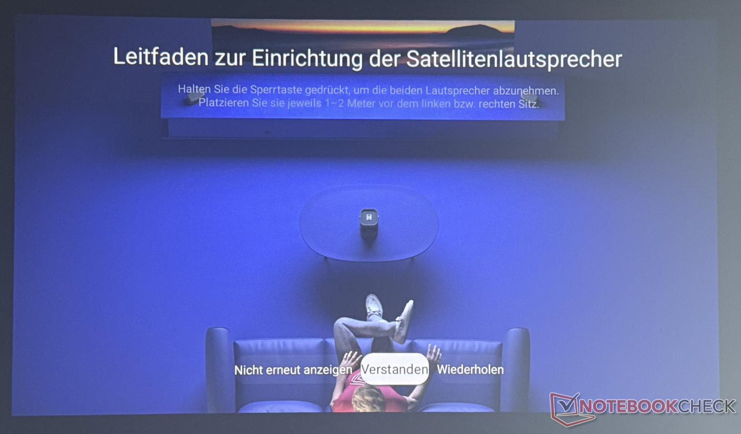 A Nebula P1 beállítása tesztünkben körülbelül háromnegyed órát vett igénybe. Ez azonban nagyrészt egy még telepítendő frissítésnek volt köszönhető. E nélkül sokkal gyorsabb. Wi-Fi csatlakozás, bejelentkezés a Google-fiókba és néhány kezdeti beállítás kiválasztása az okostelefonon vagy a projektor távirányítójával telepítendő alkalmazásokra és társaira vonatkozóan - majd a projektor kevesebb mint 30 perc alatt használatra kész.