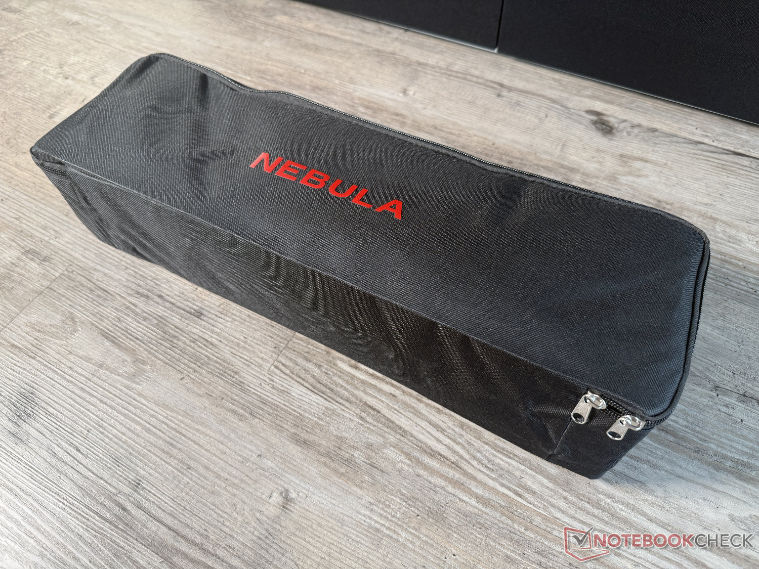 A drágább modellekhez hasonlóan X1 és a X1 Pro anker Soundcore a P1 esetében is lemondott az akkumulátor beépítéséről. Ez egy ilyen mobil koncepció esetében sajnálatos, de végső soron nagyobb méretekhez, nagyobb súlyhoz és drágább árhoz vezetett volna. A Nebula P1 a hangszórókkal együtt kevesebb mint 2,4 kg-ot nyom, és kb. 28 x 13 x 13 cm-es (hangszórókkal együtt), így könnyebben szállítható, amit a rugalmas hordozófogantyú is segít.