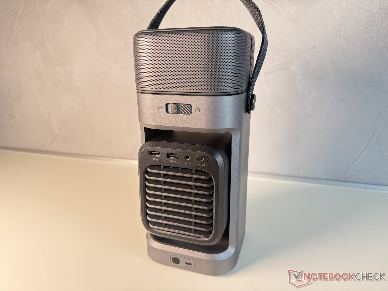 Opcionálisan a két IP54-es besorolású, fröccsenésálló hangszóró a projektortól külön is használható Bluetooth hangszóróként. Az akkumulátor élettartama csaknem egy egész nap. A projektor USB-C portján vagy a hangszórókon található USB-C porton keresztül dokkolva körülbelül három óra alatt feltölthetők. Kicsit zavaró volt a tesztben, hogy a P1 különböző hangokat ad ki indításkor. Ez azonban kikapcsolható a beállításokban.