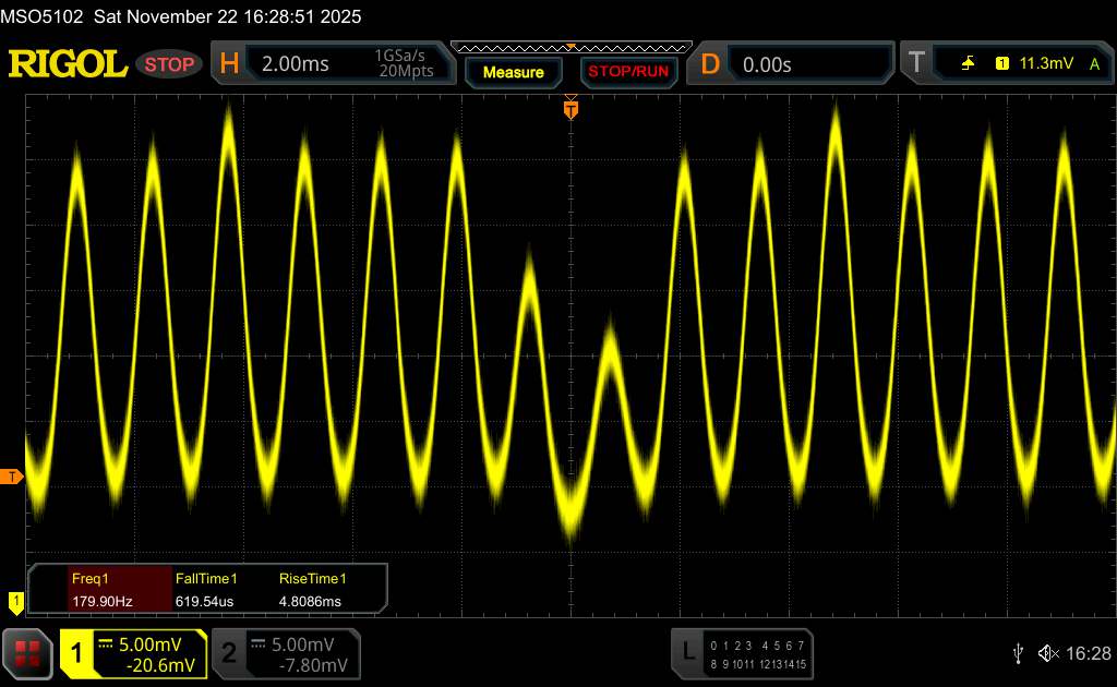 (+) | a csúcsok lineárisak (4.1% delta az előző frekvenciához képest)