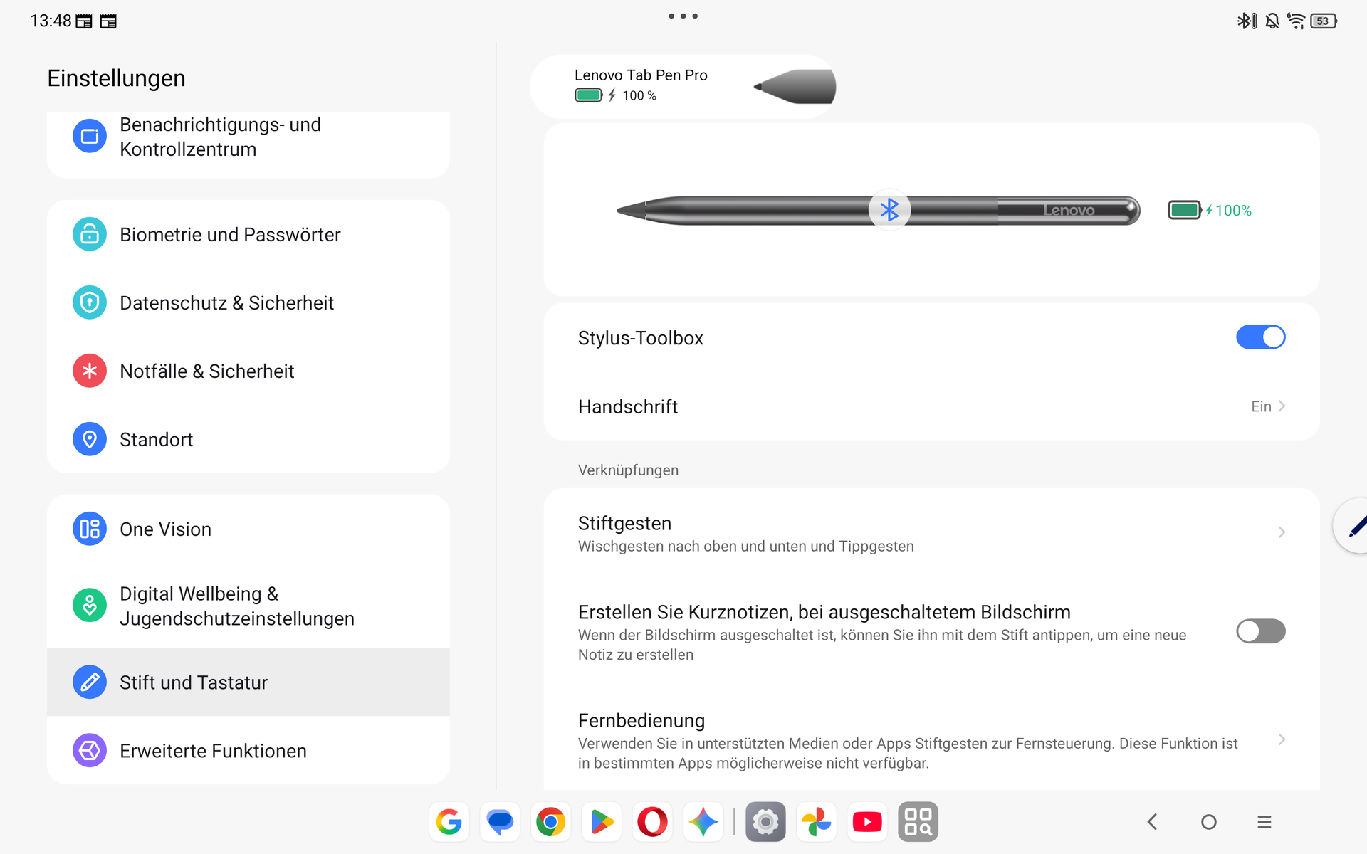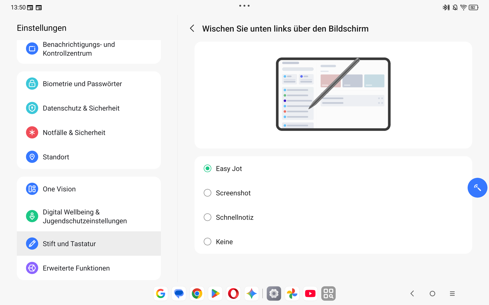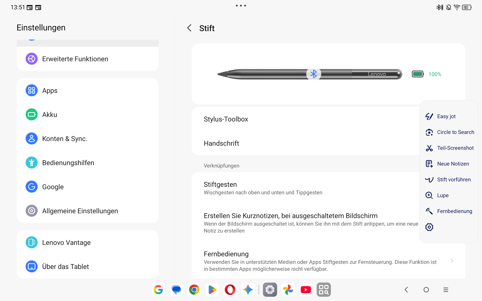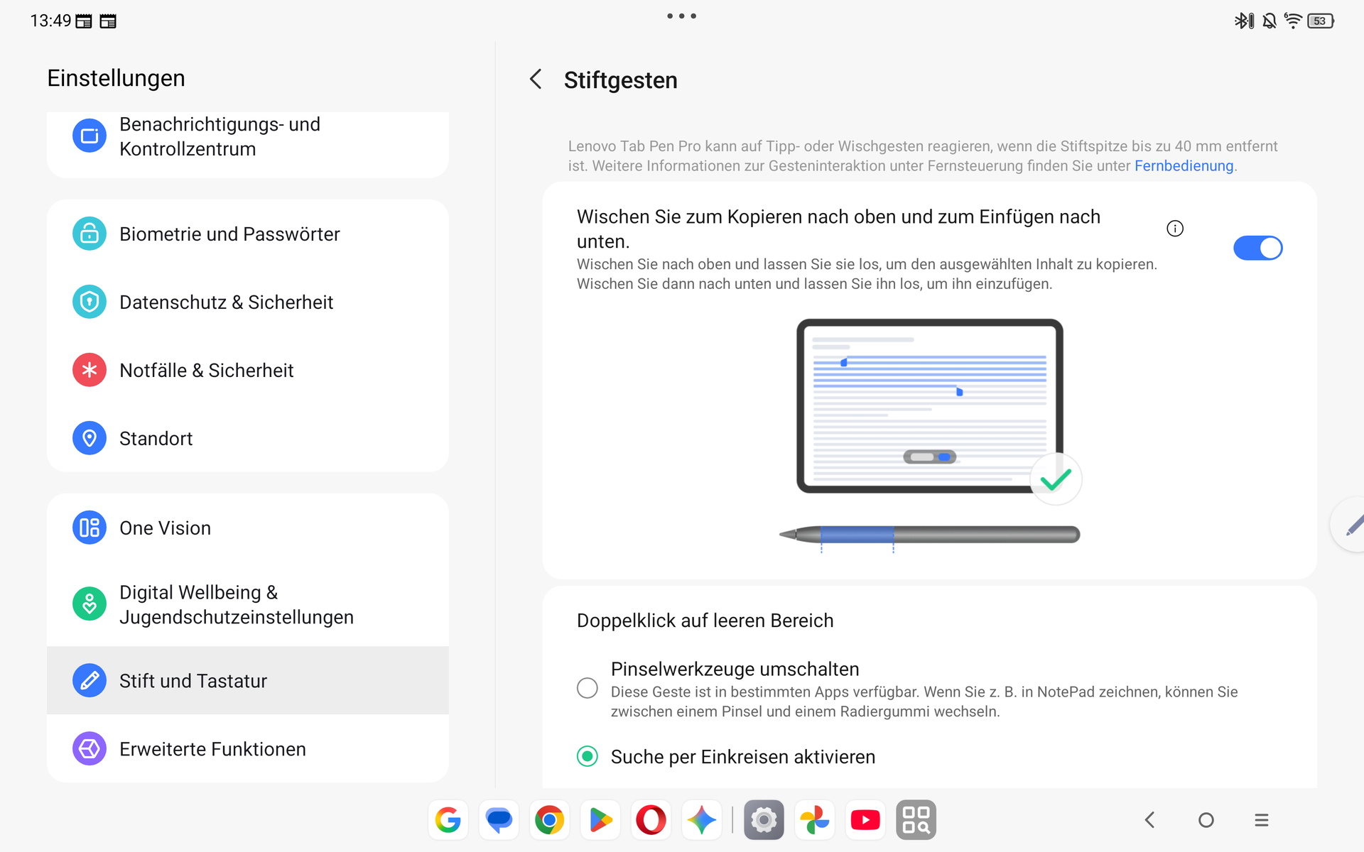 A ZUI17 felület az olyan AI funkciók mellett, mint a Circle to Search, számos lehetőséget kínál a Lenovo Tab Pen Pro produktív használatához. A toll tokjának elején található érintésérzékeny terület segítségével gesztusokkal kiválasztható például az eszköztár. Ez a mindennapi használat során nagyon megbízhatóan működik.