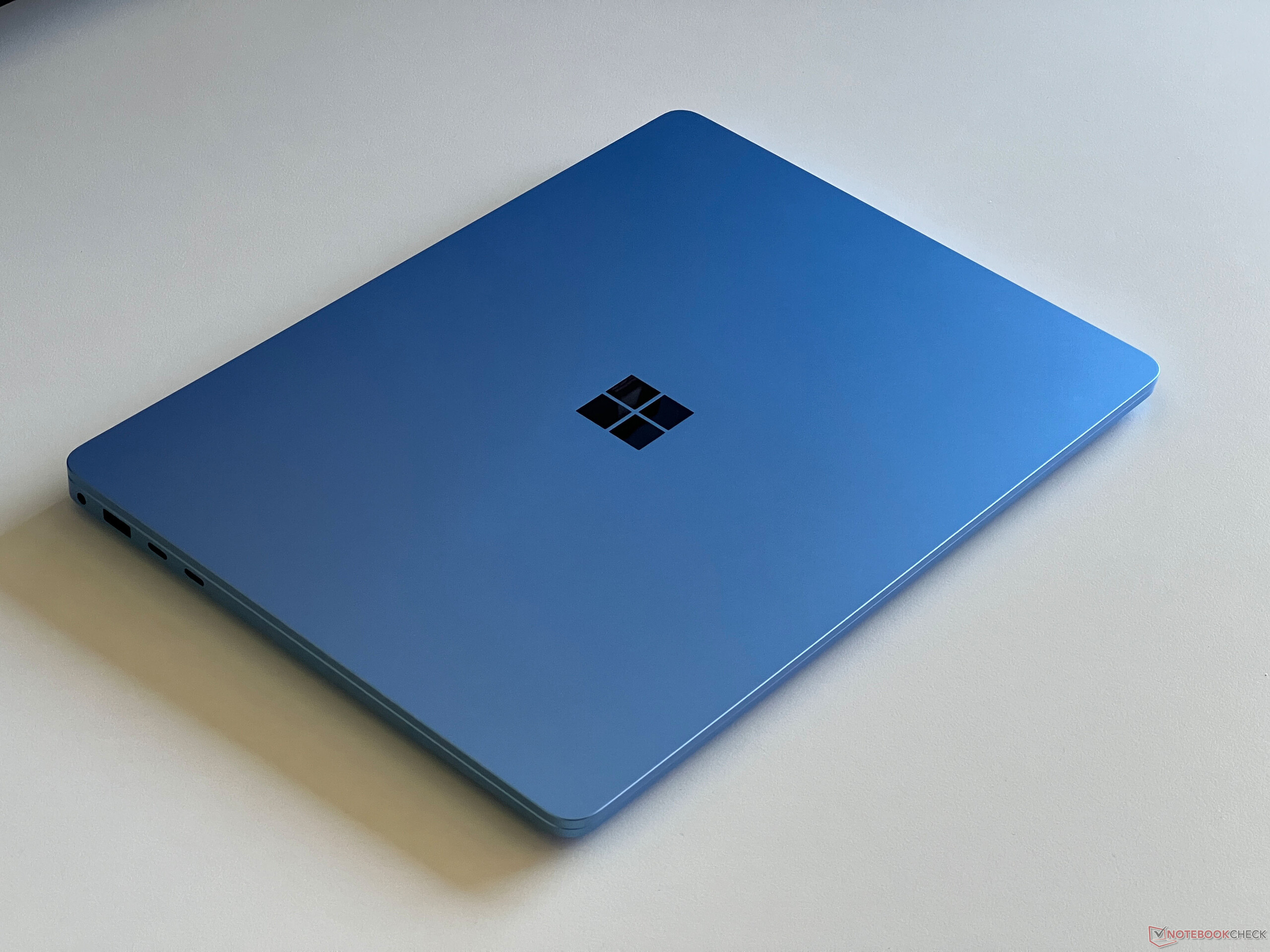 Semmi sem változott a 7. generációs Surface Laptop kialakítását illetően, és külsőleg nem fogod tudni megállapítani, hogy egy új Snapdragon modellel van dolgod. Ez csak az új Copilot gombnál válik nyilvánvalóvá. A fémház továbbra is csodálatosan kivitelezett, és a Microsoft a laptopot fekete, platina, szürke-bézs vagy zafírkék színben kínálja, ami a mi tesztkészülékünk színe. Attól függően, hogy milyen fény esik, a zafírkék modell nagyon feltűnő, és nekünk tetszik. Ráadásul az ujjlenyomatok sem jelentenek problémát.