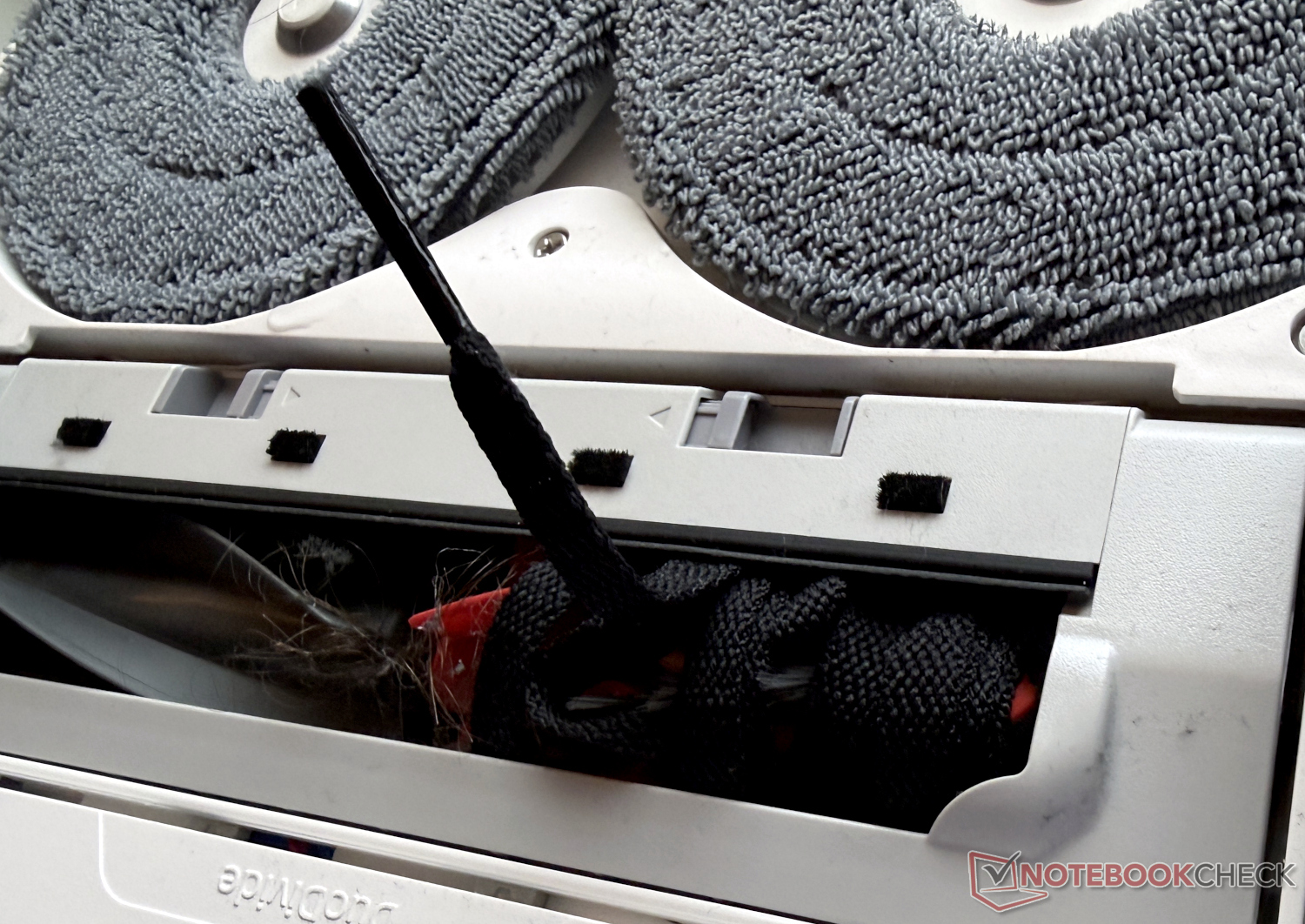 Az utolsó ellenfelet, egy laza fekete cipőfűzőt is áthajtott. A végén annyira összegabalyodott a dupla kefe körül, hogy a robot hibaüzenettel kilépett és várta a segítséget. Még a "Kevesebb ütközés" aktiválása a beállításokban sem hozott nagy változást. De: A hajcsomósodás elleni technológia nagyrészt jól működött.