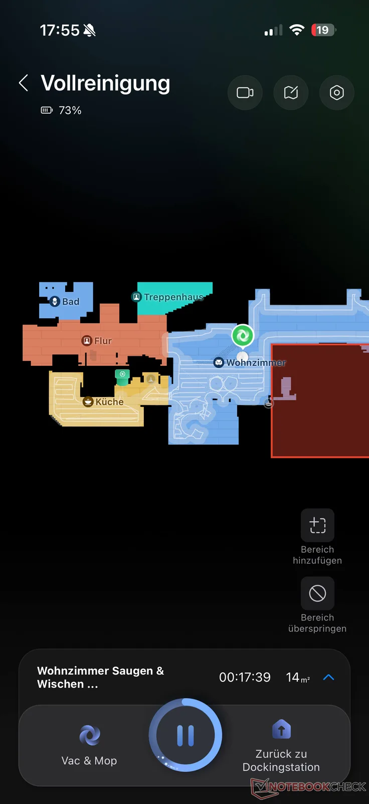 Ezzel elérkeztünk a törlési teljesítményhez. Ez a tesztben több mint szilárd volt, köszönhetően a most használt meleg víznek is, de véleményünk szerint nem hasonlítható össze a modern, felmosóhengerrel ellátott modellekkel, mint például a Dreame Aqua10 Ultra Roller. A teljesítmény elegendő a rendszeres felmosáshoz. A porszívó és felmosó robot azonban makacs vagy ragadós szennyeződéseknél eléri a határait.