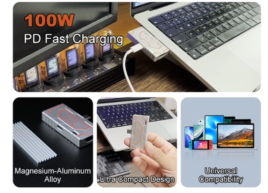 Az eszköz USB-C csatlakozón keresztül csatlakoztatható okostelefonhoz, így az okostelefont akár a dokkoló csatlakoztatása mellett is kézben lehet tartani. Egy HDMI 2.0 port is rendelkezésre áll, amely 4K felbontású és 60 Hz-es képi tartalmak kimenetére használható. Mint mindig, ezt a funkciót az adott készüléknek támogatnia kell. Ugyanez vonatkozik az USB PD töltésre is, amelyet a dokkoló megoldás akár 100 wattal támogat. Az 54,5 gramm súlyú és 10 milliméter vastag készüléket magnézium-alumínium ötvözetből készült testbe építették be, amely a gyártó állítása szerint biztosítja a "hőelvezetést tartósan nagy sebességű működés közben".