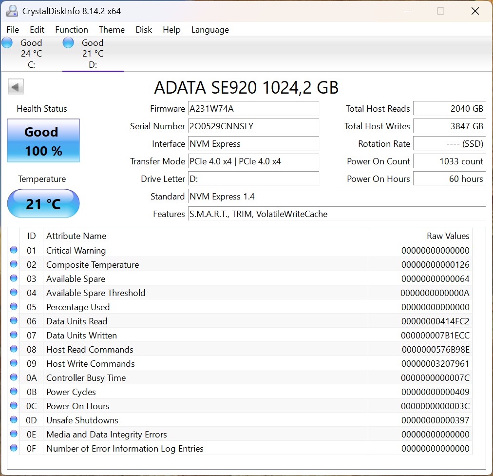 USB4-sebesség (ADATA SE920)