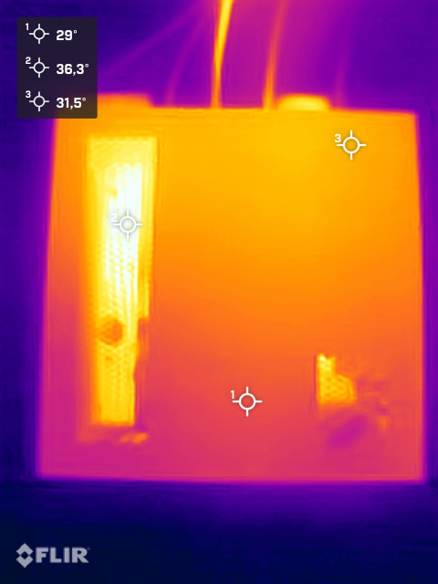 (+) A felső oldalon a maximális hőmérséklet 33.4 °C / 92 F, összehasonlítva a 35.9 °C / 97 F átlagával , 21.4 és 69.5 °C között a Mini PC osztálynál.