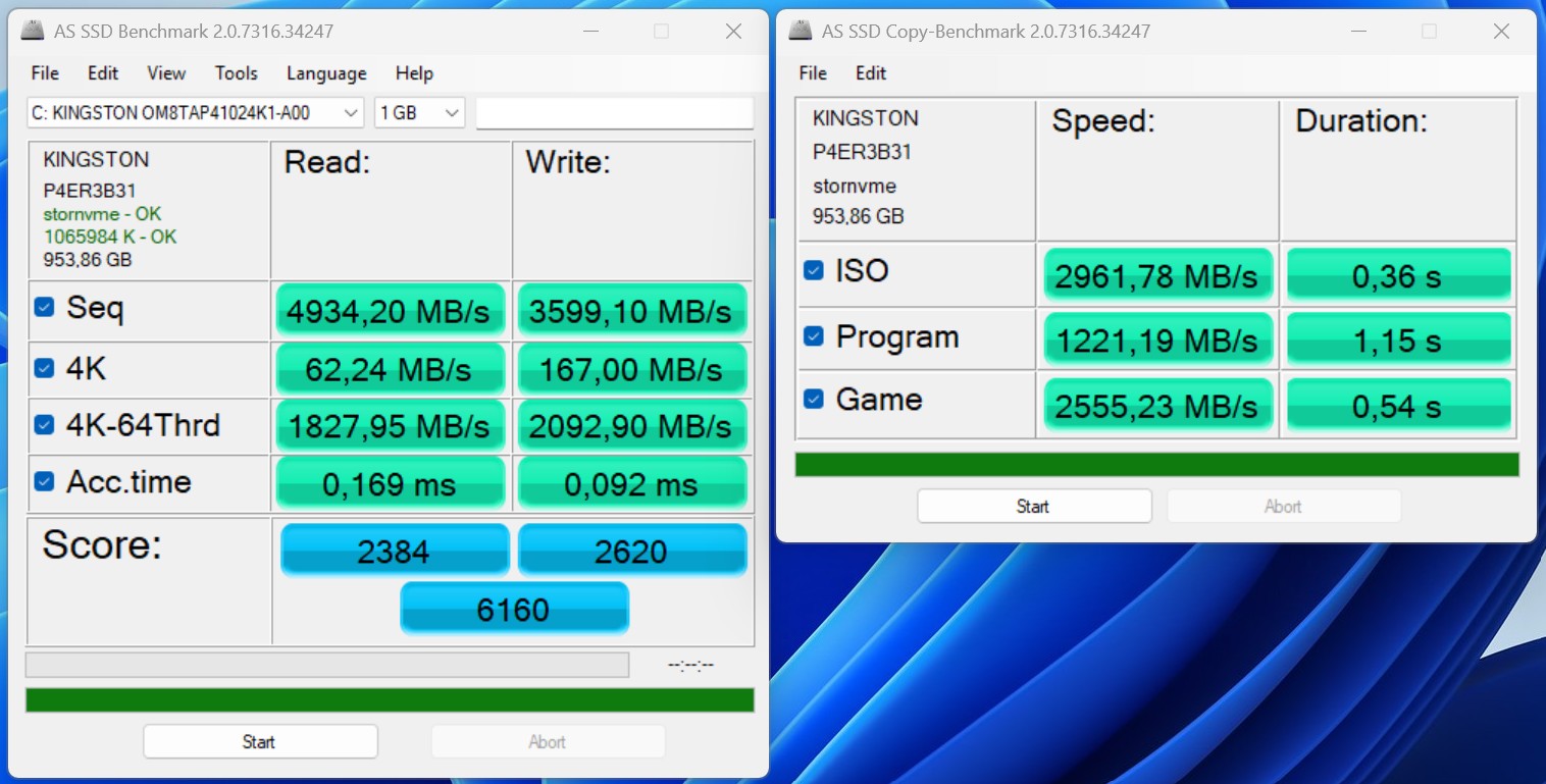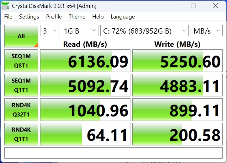 | Connectivity - USB 3.x / USB4 / TB - AS SSD Seq Read Test (1GB) | |