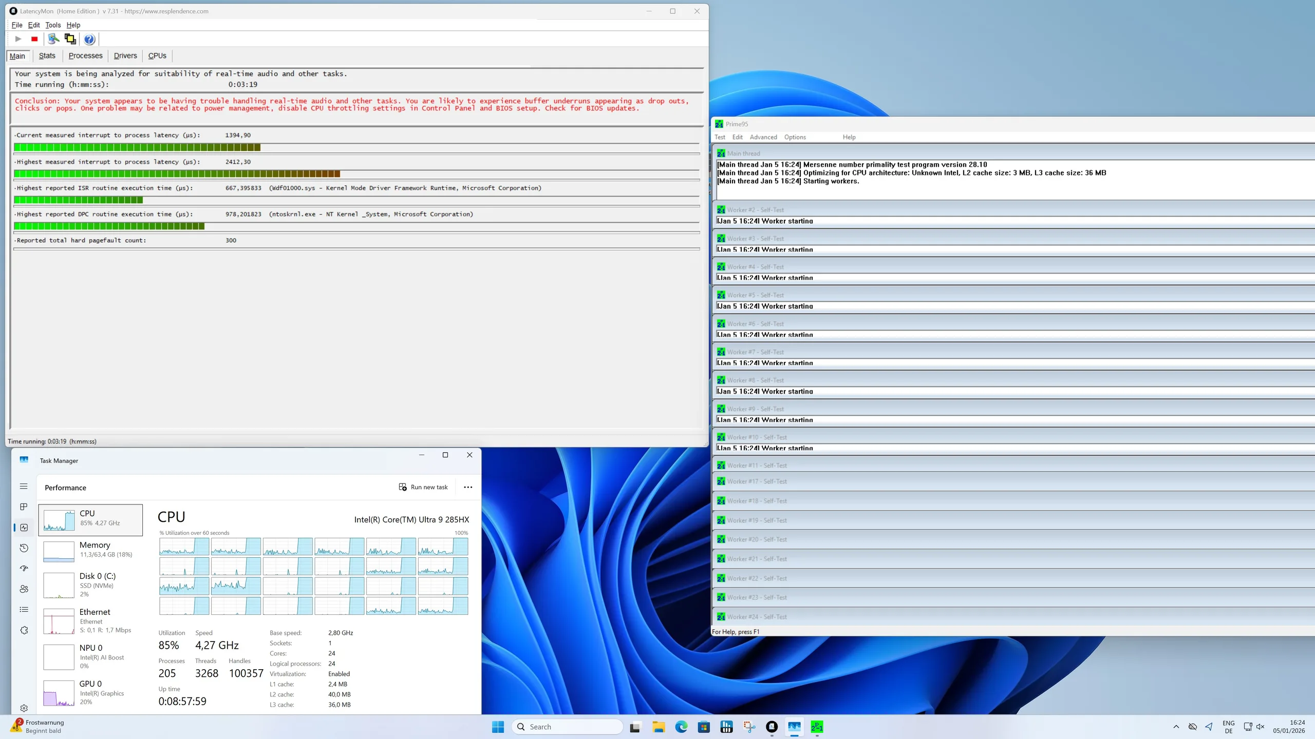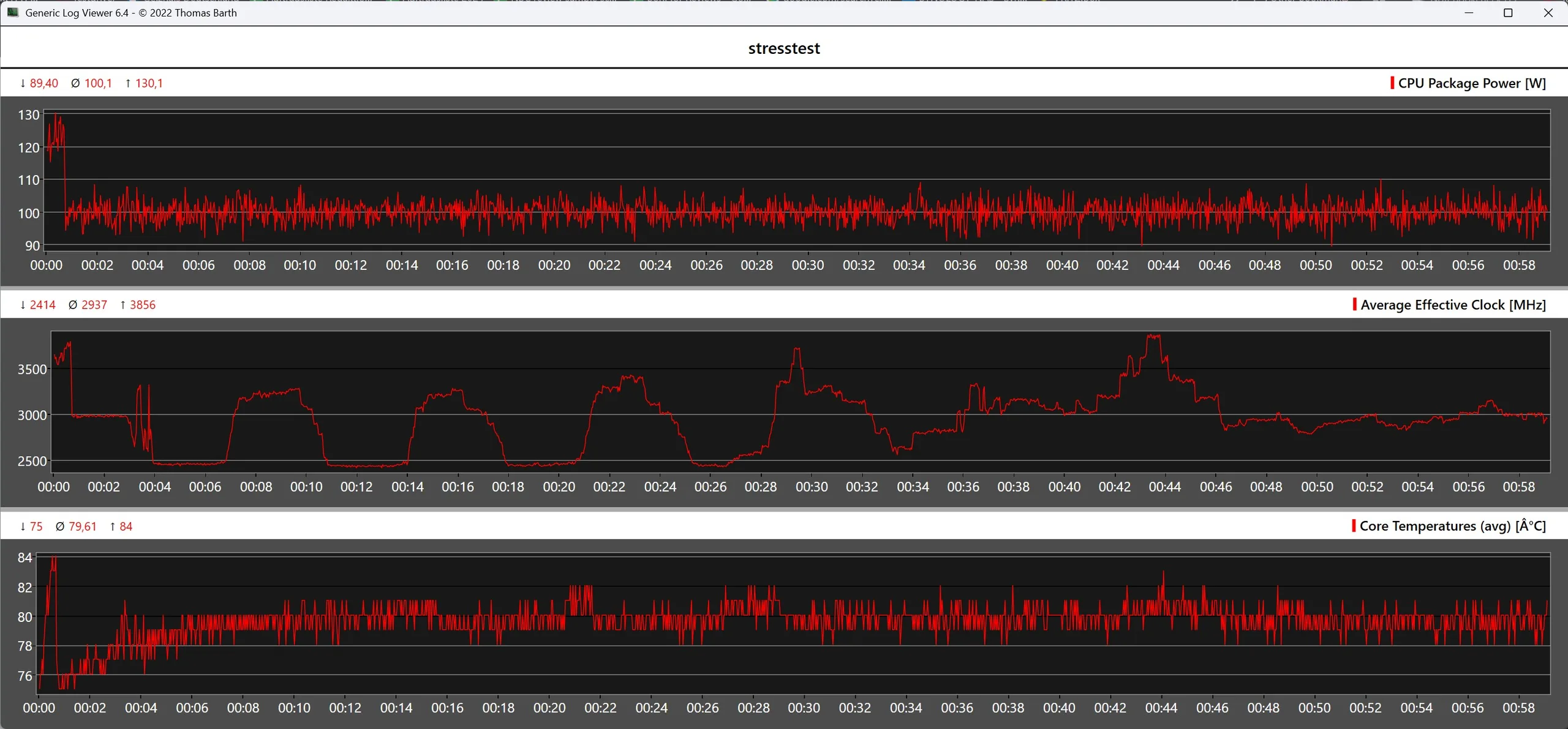 A Minisforum MS-02 Ultra házfelületei mind üresjáratban, mind terhelés alatt egyenletesen észrevehetetlenek maradnak. Teljes terhelés mellett a processzor 80 °C körüli hőmérsékletet ér el, és képes a meghatározott, legfeljebb 100 wattos energiafogyasztást hosszabb időn keresztül stabilan tartani.