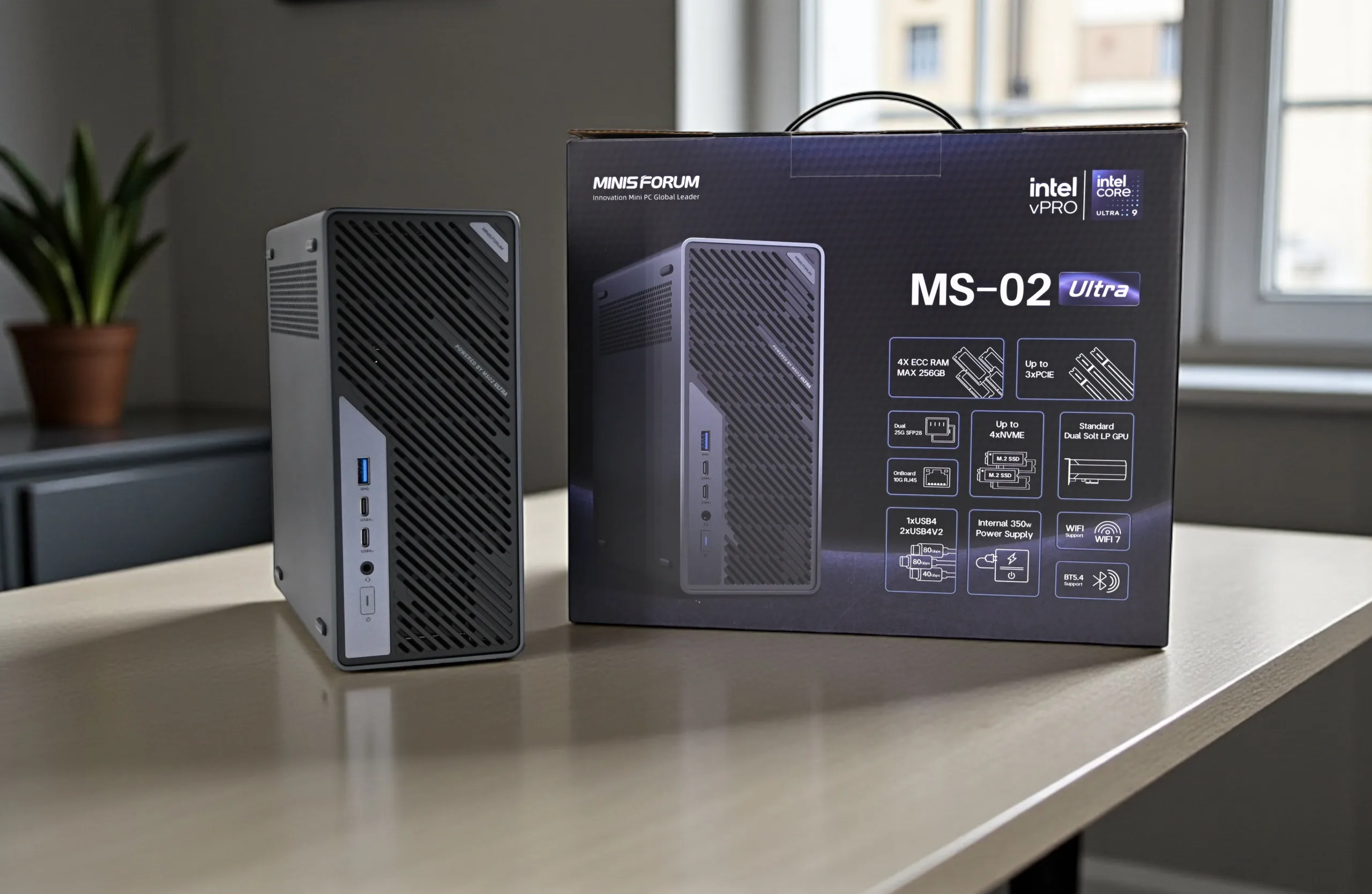 A Minisforum MS-02 Ultra, a gyártó egy olyan mini PC-t dob piacra, amely egyértelműen a professzionális felhasználókat és az igényes rajongókat célozza meg. A rendszer kompakt méretei ellenére teljes értékű munkaállomásként pozícionálja magát mini formátumban, és a modern Intel Core Ultra technológiát kivételesen átfogó funkciókkal kombinálja. Ez azt jelenti, hogy az MS-02 Ultra nem csupán a klasszikus irodai vagy multimédiás feladatok ellátására szolgál, hanem alkalmas virtualizációra, szerverszolgáltatásokra, tartalomkészítésre és mesterséges intelligenciával kapcsolatos munkaterhelésekre is.