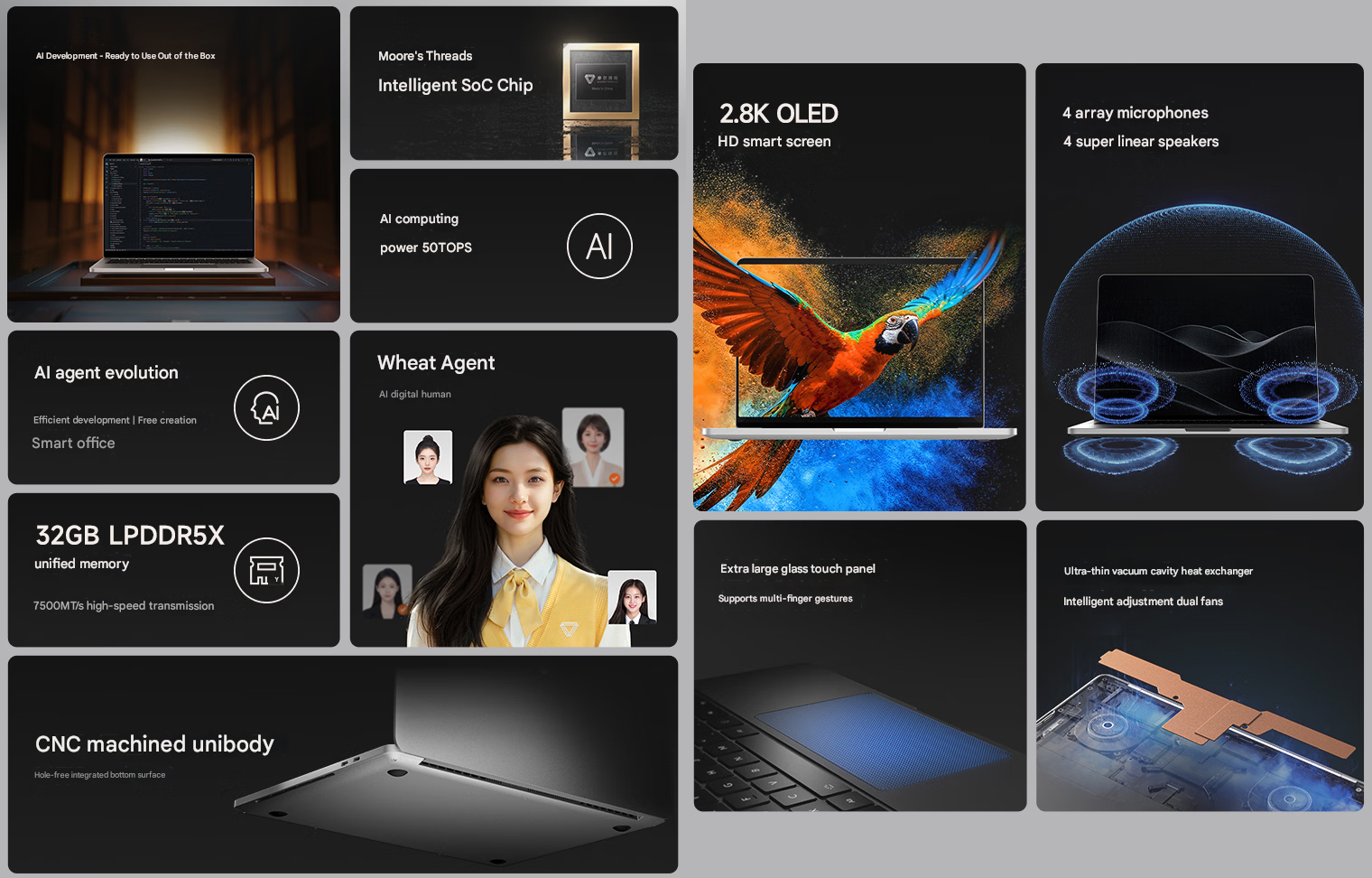 A Moore Threads új prémium kategóriás laptopot mutatott be, az MTT AIBookot. A gépet a márka állítása szerint Kínában gyártott SoC hajtja, amely CPU-t, NPU-t és GPU-t tartalmaz.