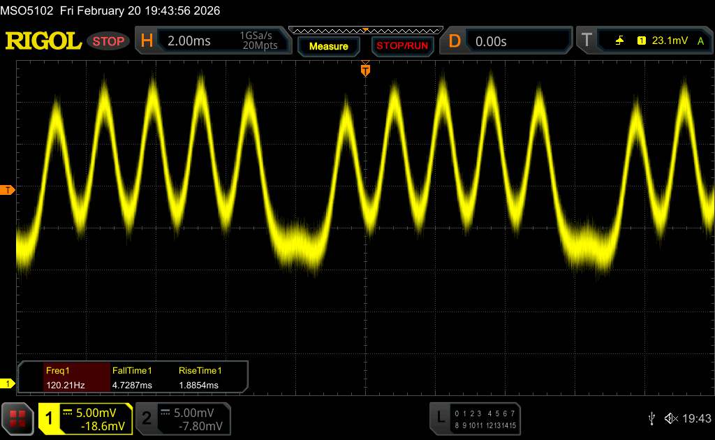 (+) | a csúcsok lineárisak (1.4% delta az előző frekvenciához képest)