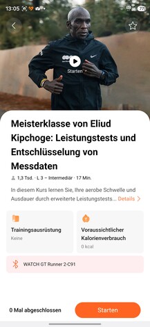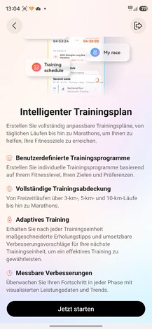 Ha a fitneszről van szó, a Watch GT Runner 2, ahogy a neve is mutatja, egyértelműen a futásra összpontosít. A szokásos futási módok mellett egy új maraton üzemmódot is bevezetett, és a Health alkalmazásban megfelelő edzéstervek találhatók. Ezek nem kötődnek a Health+ előfizetéshez, hanem a futók számára továbbra is ingyenesek.