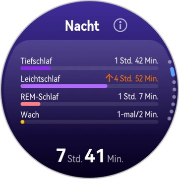 A múlt éjszakai eredmények közvetlenül az órán tekinthetők meg, míg a hosszabb távú elemzések a Huawei Health alkalmazásban érhetők el. Összességében a mérési eredmények megbízhatónak tűnnek. Bár a Watch GT Runner 2 nem kínál intelligens ébresztést, egyéni ébresztési időpontokat állíthatsz be.