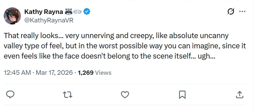 A oldalon Resident Evil Requiem, A Digital Foundry megmutatja hogy a DLSS 5 még tovább fokozza a Capcom amúgy is kiemelkedő karakterrendezését. Az így kialakult különbségek azonban annyira markánsak, hogy Grace, a RE Requiemfőszereplője szinte teljesen más embernek tűnik. Ugyanezeket a játékmenetet megváltoztató fejlesztéseket láthatjuk a Starfieldben is, ahol a karakterek szinte fotorealisztikusan néznek ki. A karakterek megjelenítésében bekövetkezett változások azonban ugyanolyan uncanny valley hatásúnak tűnnek, mint bármi, amit mesterséges intelligencia generál.