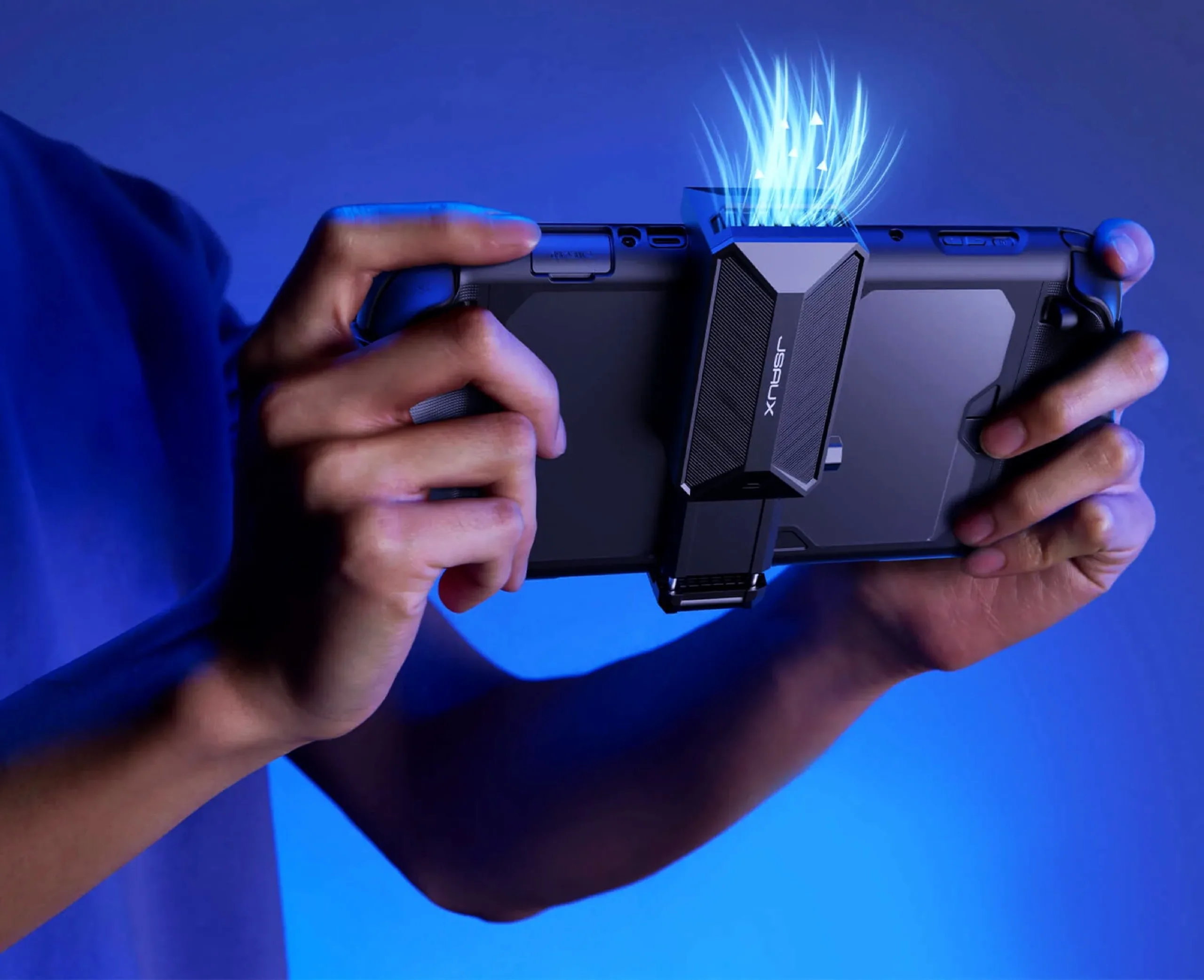 A hátoldalon található további USB-C port lehetővé teszi a konzol töltését a Jsaux ventilátor használata közben. Ez a port akár 18 wattal is töltheti a konzolt, és a Jsaux egy 65 wattos USB-C töltőt ajánl, amellyel a konzol három óra alatt teljesen feltölthető. A ventilátor sebessége egy forgatógombon keresztül állítható, és a Jsaux megjegyzi, hogy a magasabb fordulatszám nyilvánvalóan nagyobb ventilátorzajjal jár.