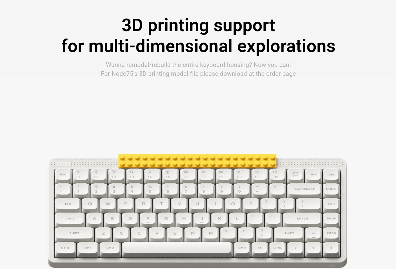 Csakúgy, mint a NuPhy Kick75 esetében, amelyet élveztünk a tesztünkben, a NuPhy 3D modelleket tett közzé a Node75-ről, hogy lehetővé tegye a mélyebb testreszabást és személyre szabást, ami mindig jó hír. A szóban forgó 3D modellek egy tolldokkoló, egy pultos tálca, egy telefonállvány, egy kijelződokkoló, egy téglatartó (mint a Lego téglák), egy sapkatartó és egy kártyatámasz. Ha elég ügyes vagy ambiciózus vagy, akkor képesnek kell lenned arra, hogy felhasználd vagy módosítsd ezeket az alkatrészeket, hogy saját kiegészítőket készíts a Node75-öshöz.
