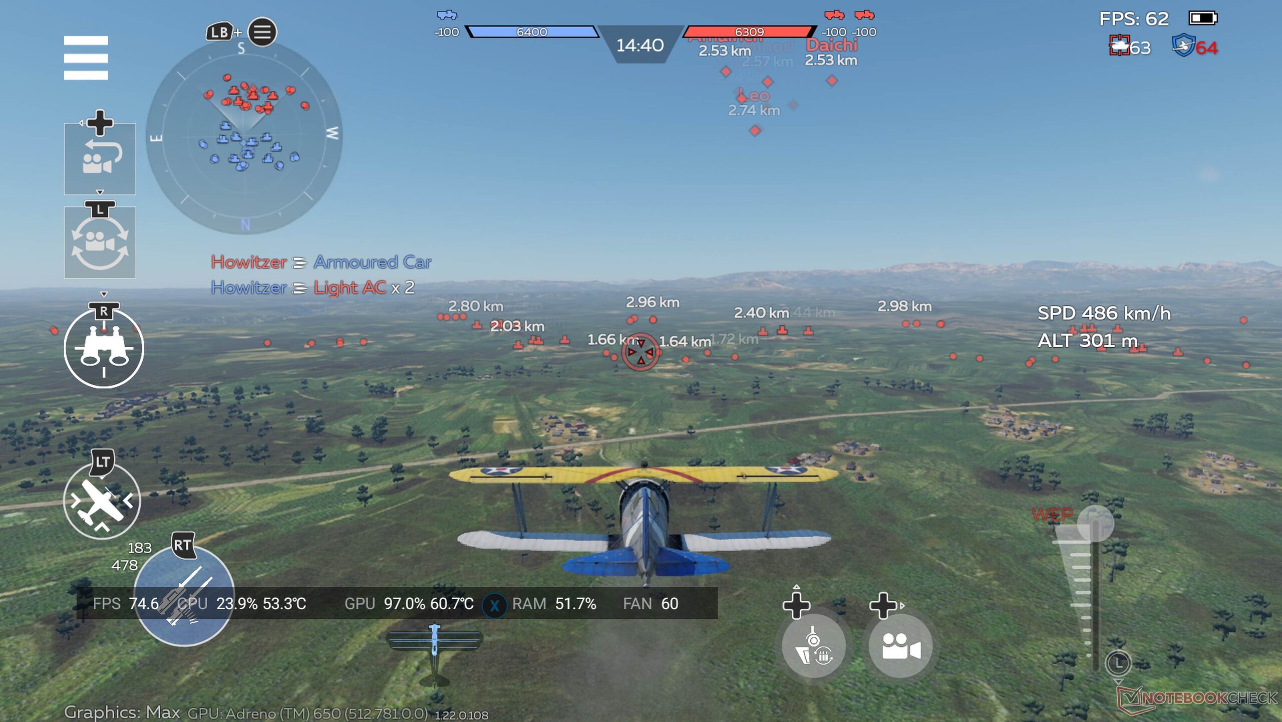 Használja a Qualcomm Snapdragon 865 és így egy olyan számítóchipet, amely már több mint hat éves. A cikk végén találsz egy teljesítmény-összehasonlítást különböző jelenlegi okostelefonokkal és az Odin2 portálon használt Qualcomm Snapdragon 8 Gen 2-vel is, hogy érezd, milyen teljesítményt nyújt a régi SoC 2026-ban. Egy dolog egyértelmű: a Mangmi Pocket Max nem tudja helyben megjeleníteni a jelenlegi triple-A címeket, de ez is inkább egy Android vagy retro handheld, és nem alternatívája például egy Asus ROG Ally. Ennek ellenére a Snapdragon 865 könnyedén képes felgyorsítani még az igényes Android címeket is, jó vagy kiváló játszhatósággal. A Genshin Impactben például stabil 60 képkocka/másodperc érhető el közepes-magas beállítások mellett - ennél többet a cím nem támogat a Android. A War Thunder Mobile-ban a légi és földi csatákban is mindig gördülékeny képkockasebesség érhető el magas beállítások mellett. A képkockasebességnek természetesen jót tesz az 1 920 × 1 080 pixeles felbontás, ami lényegesen alacsonyabb, mint a jelenlegi okostelefonokon. A szintén ingyenes és grafikailag is igen impozáns Where Wind Meets szintén könnyen játszható. A SoC a Quality előbeállítással eléri a határait, de a Balanced előbeállítással nagyon jó játékélményt szereztünk. Pozitívum: A szintetikus benchmarkokban sem tudtunk throttlingot előidézni. A ventilátor maximális fordulatszámon jól hallható. Tapasztalataink szerint azonban erre sosincs igazán szükség, mivel az intelligens ventilátorvezérlés kissé túlságosan agresszívnek tűnik.