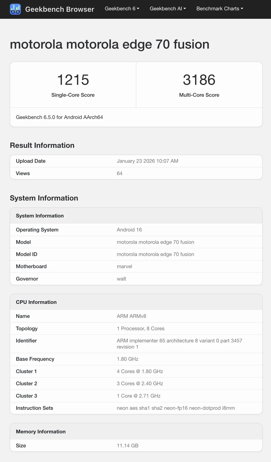 Most két Geekbench listázás is alátámasztja azt az elképzelést, hogy a Motorola hamarosan lecseréli a Edge 60 Fusiont (jelenleg 379 dollár az Amazonon) közvetlen utódjával. Mindkét listázás azonban arra utal, hogy a Motorola az Edge 70 Fusiont egy újabb chipkészlettel szerelte fel, mint a Snapdragon 7s Gen 3 blass legutóbbi tweetjében említett. Konkrétan a chipkészlet 2,71 GHz-es órajele a 3-as klaszteren a chipkészletet azonosítja Snapdragon 7s Gen 4 és nem az elődjét.