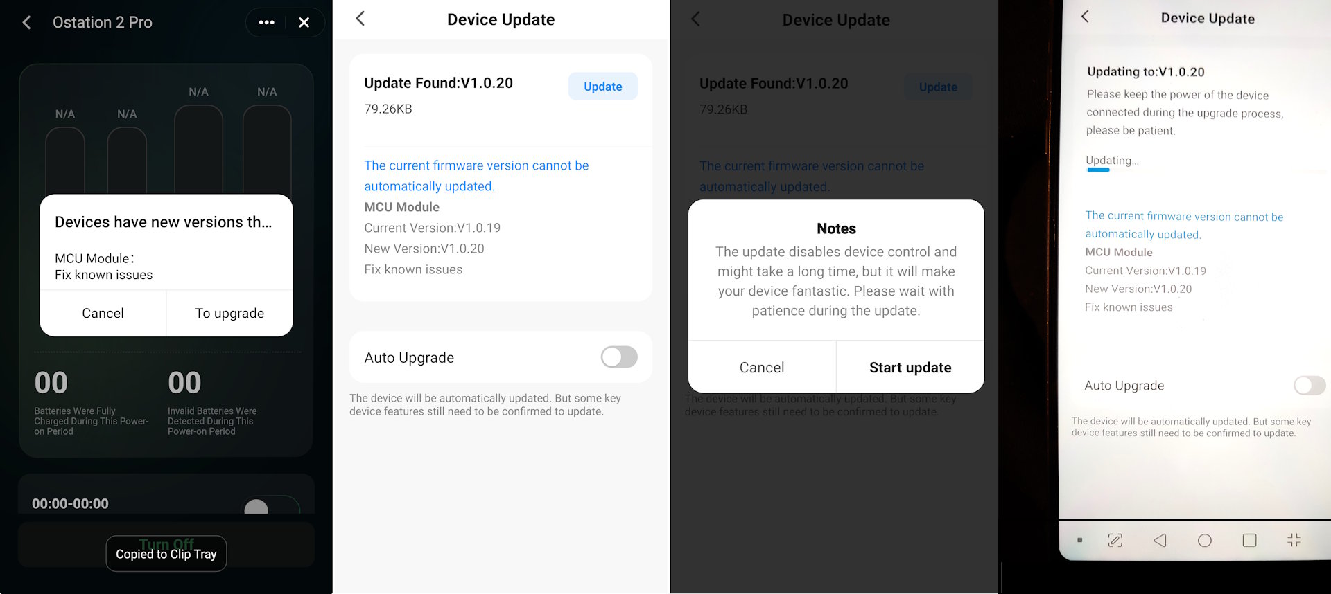 Az érintőképernyő segítségével nyomon követheti a töltést és módosíthatja a rendelkezésre álló szűkös beállításokat. Az okostelefon-alkalmazás lehetővé teszi a felhasználók számára a töltés távoli felügyeletét, de ehhez 2,4 Ghz-es, nem pedig 5 Ghz-es Wi-Fi kapcsolatra van szükség. Az Ostation nem támogatja a Wi-Fi Direct kapcsolatokat, ami korlátozza az alkalmazás kültéri használatát, amikor az Ostationt generátorok vagy napenergia táplálja.