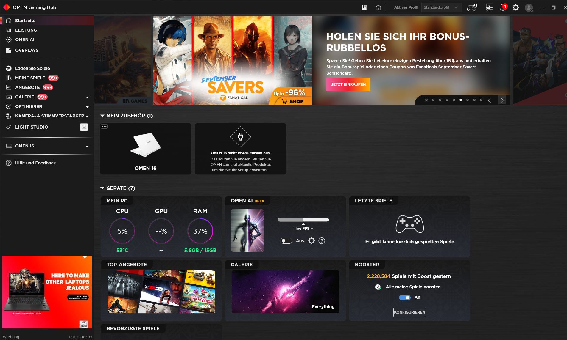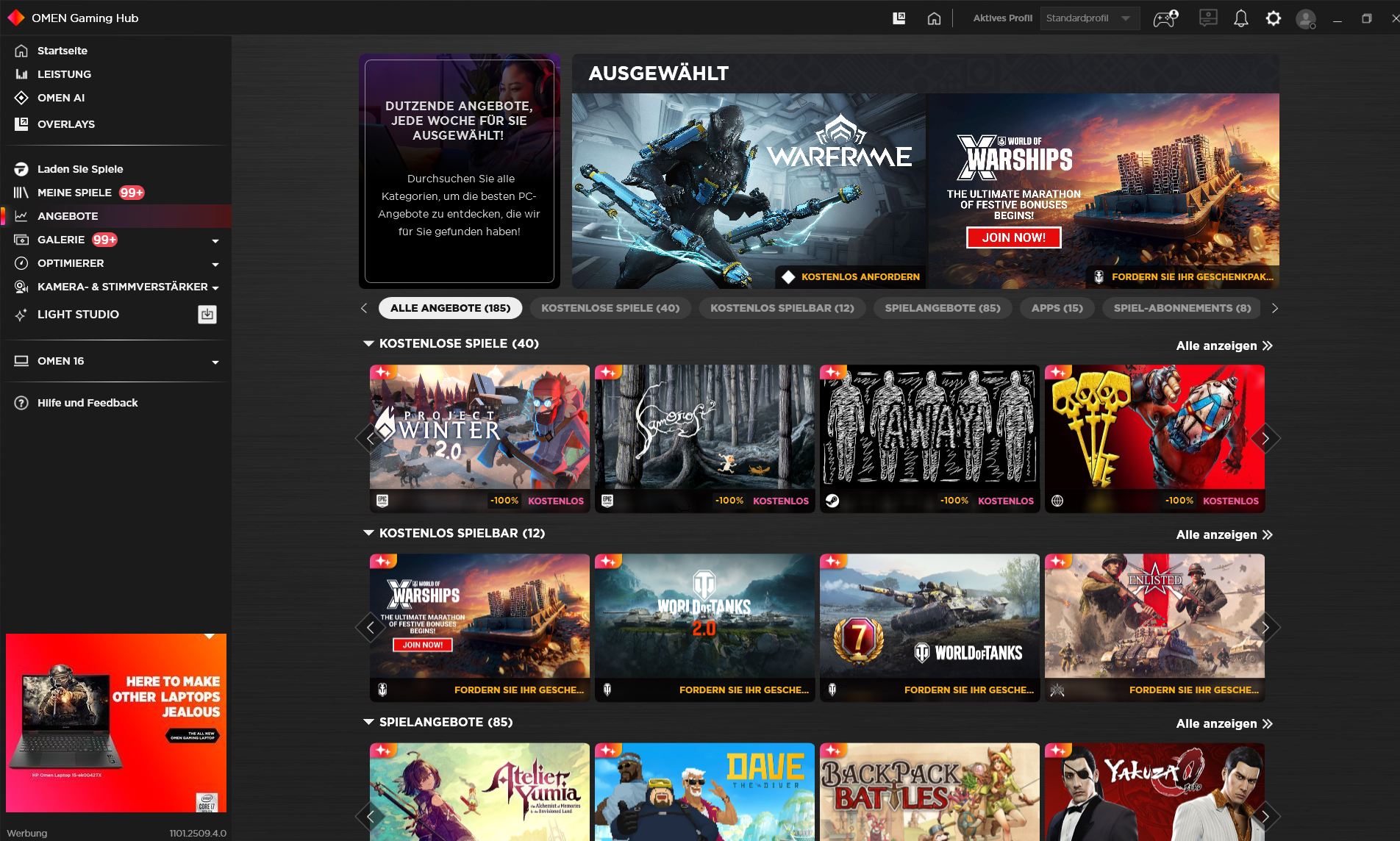 Ami még inkább elkeserítő, hogy a HP ezt az egyébként nagyszerű készüléket reklámtáblává alakította. Az úgynevezett Gaming Hub alkalmazás - ahol csak a teljesítménymódokat, a fényeffektusokat vagy esetleg a MUX kapcsolását kellene állítgatnunk - annyira túlterhelt, hogy valóban nehéz navigálni benne.