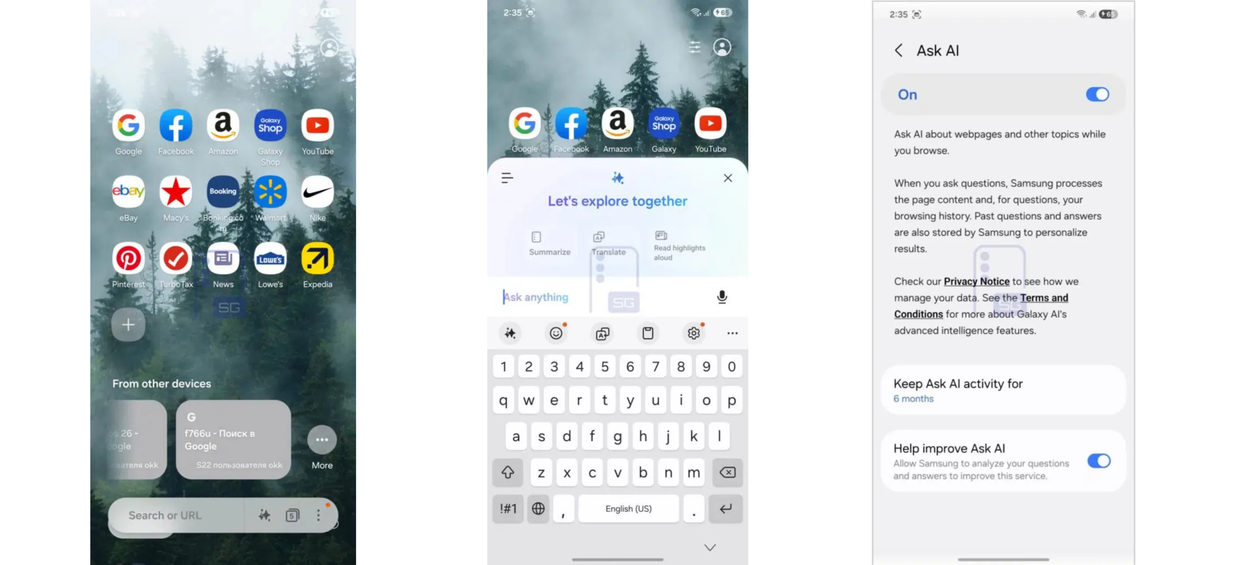 A SammyGuru által készített jelentés szerint, kiszivárgott buildek a One UI 9 a Samsung Internet új kiegészítéseire utalnak. A böngésző állítólag egy új, kompakt keresősávot kap, amely lebegő elrendezésben, a képernyő aljához közel helyezkedik el. Ez olyan lehetőségeket tartalmaz, mint a keresés, az AI hozzáférés, a legutóbbi lapok és egy menü.