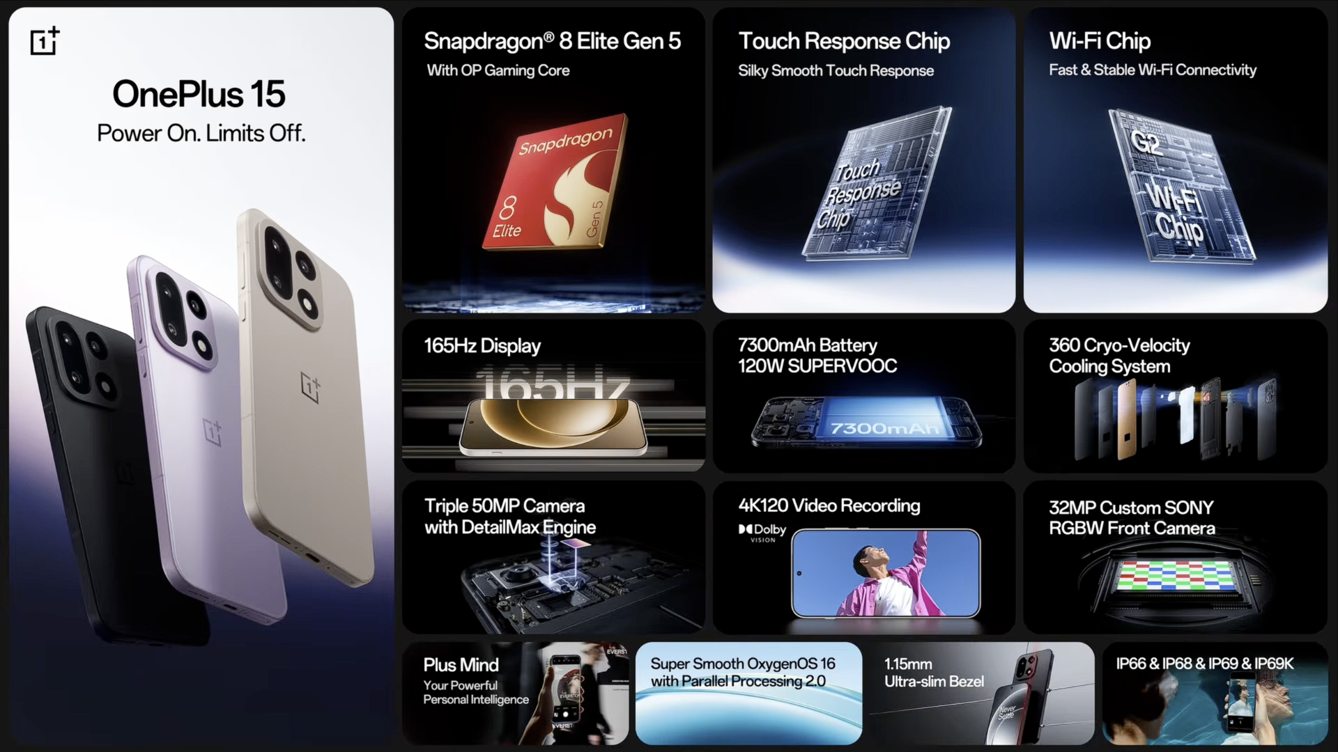 Eközben a OnePlus megerősítette az INR 72,999 és CA$1,299.99 induló árakat Indiában és Kanadában. Más szóval a OnePlus 15 drágább lesz elődeinél ezeken a piacokon. Ezzel szemben az eurózónában és az Egyesült Királyságban 949 euróért/ 849 fontért kapják majd a OnePlus 15-öt, ami 50 euró/50 font árcsökkenést jelent a OnePlus 13-hoz képest. A OnePlus 15 teljes árképzése, amelyet a OnePlus ma nyilvánosságra hozott, a következő: