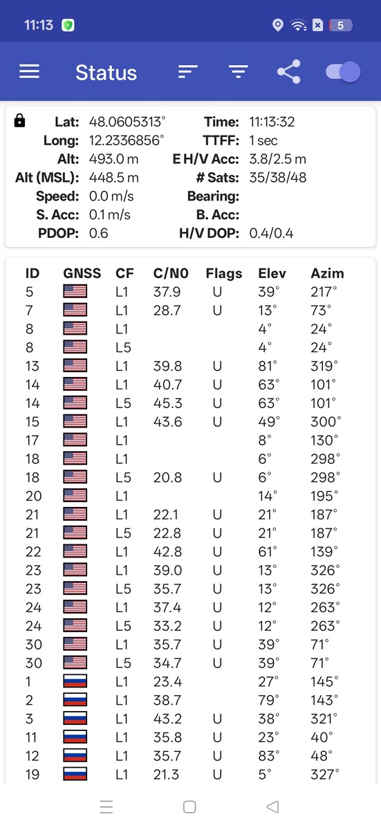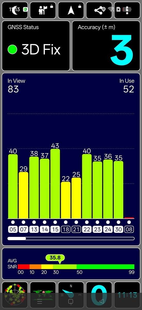 A szabadban a OnePlus 15 gyorsan, néhány méteres pontossággal meghatározta a helyzetünket. A helymeghatározáshoz minden fontosabb műholdas rendszer elérhető, de sajnos a készülékből hiányzik a még nagyobb pontosságot biztosító SBAS.