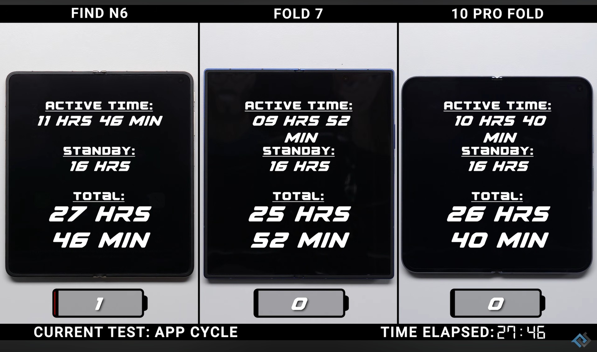 A PhoneBuff átfogó akkumulátor-üzemidő tesztje szerint az Oppo Find N6 kézzel veri a Galaxy Z Fold 7 és a Google Pixel 10 Pro Fold készülékeket. A PhoneBuff mindhárom telefont számos forgatókönyvben tesztelte, beleértve a játékokat, a közösségi média használatát és az általános webböngészést. Az akkumulátoros üzemidő eredményei a következők: