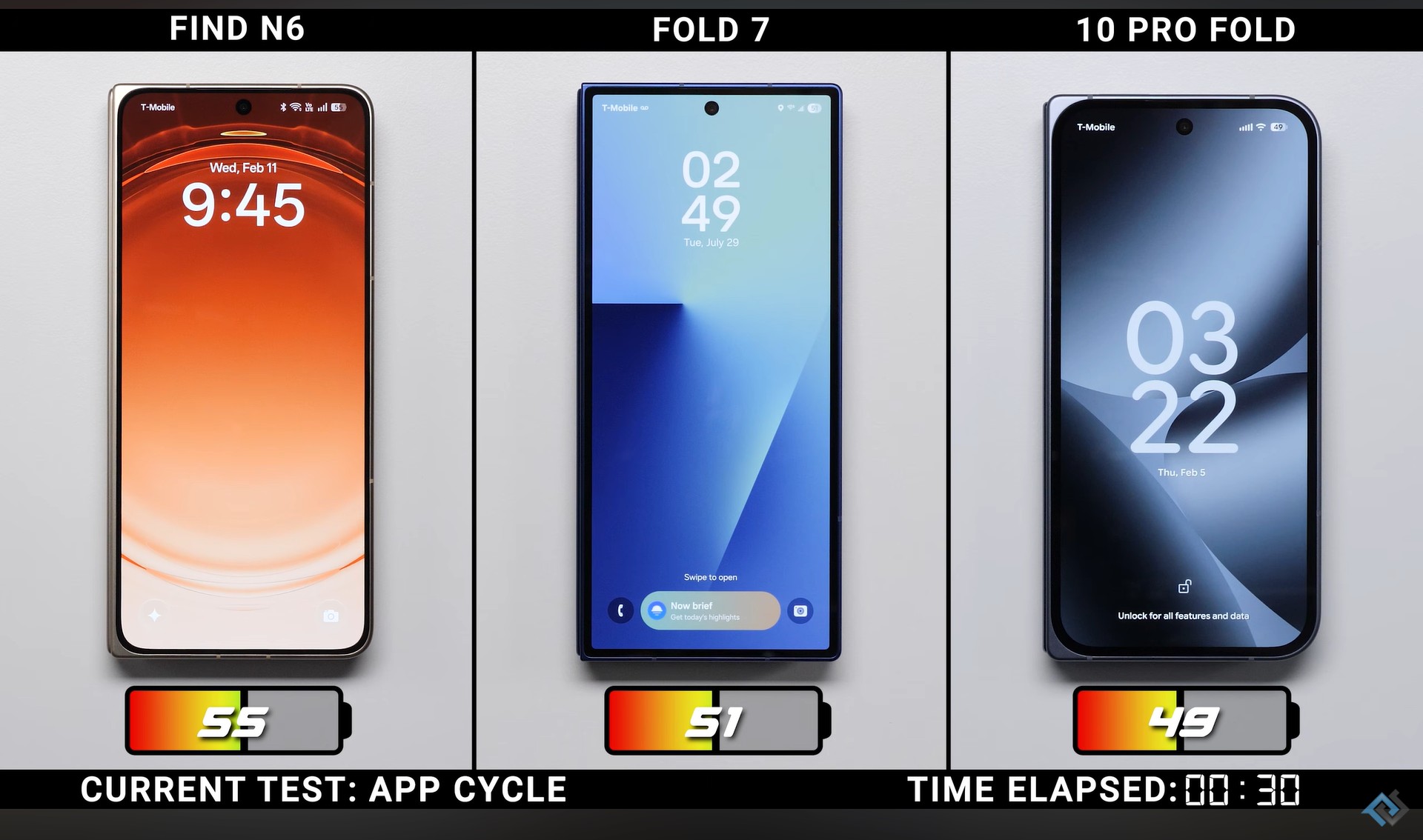 Oppo Find N6 vs Galaxy Z Fold 7 vs Pixel 10 Pro Fold akkumulátor élettartam teszt mutatja, miért szilícium-szén akkumulátorok itt maradni