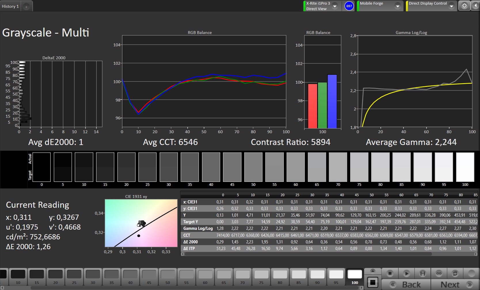 ΔE Greyscale Calman: 1 | ∀{0.09-98 Ø5}