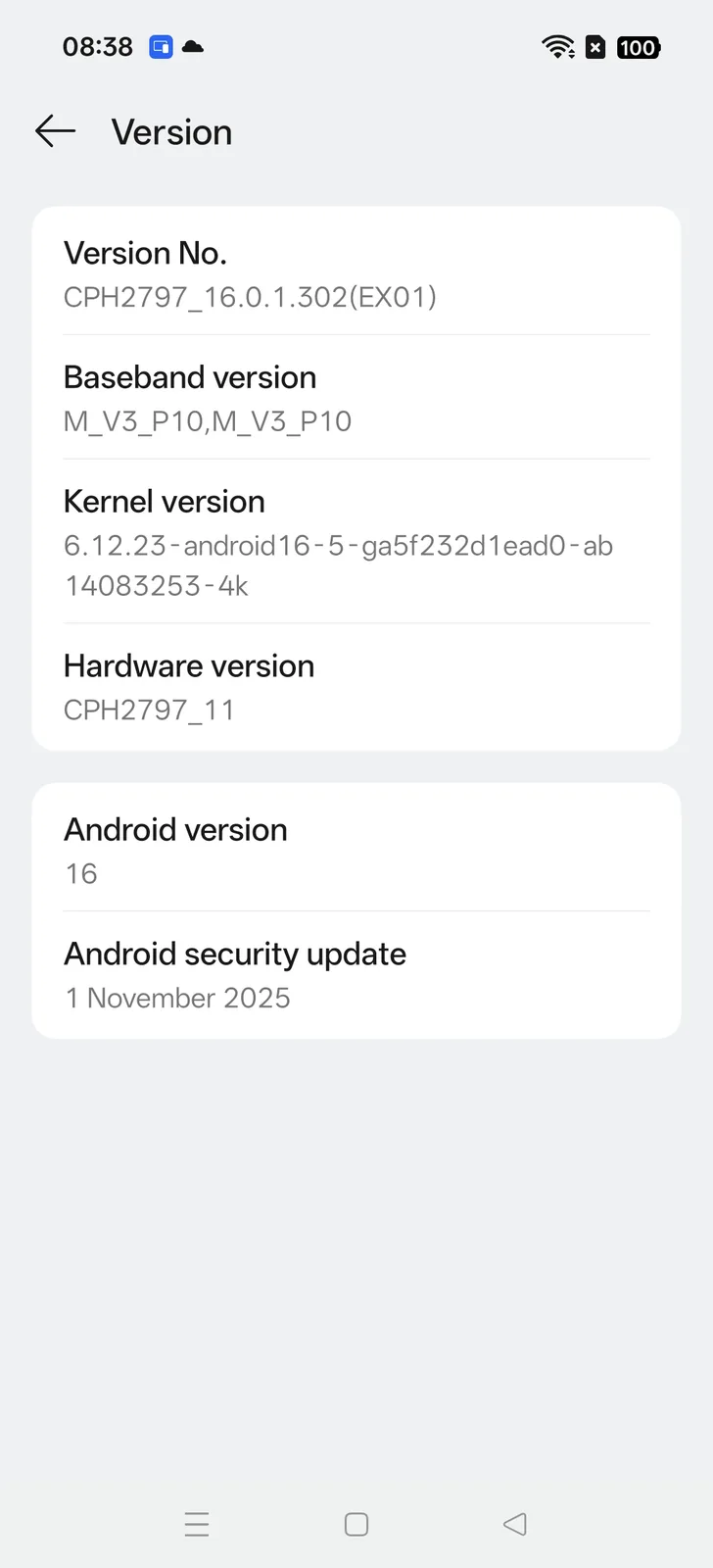 Az Oppo a saját ColorOS felületét használja, amely a Android 16-on alapul. A biztonsági javítások 2025. november 1-től származnak, ami azt jelenti, hogy a felülvizsgálat idején bumm-frissek. A frissítéseket további hat évre tervezik.