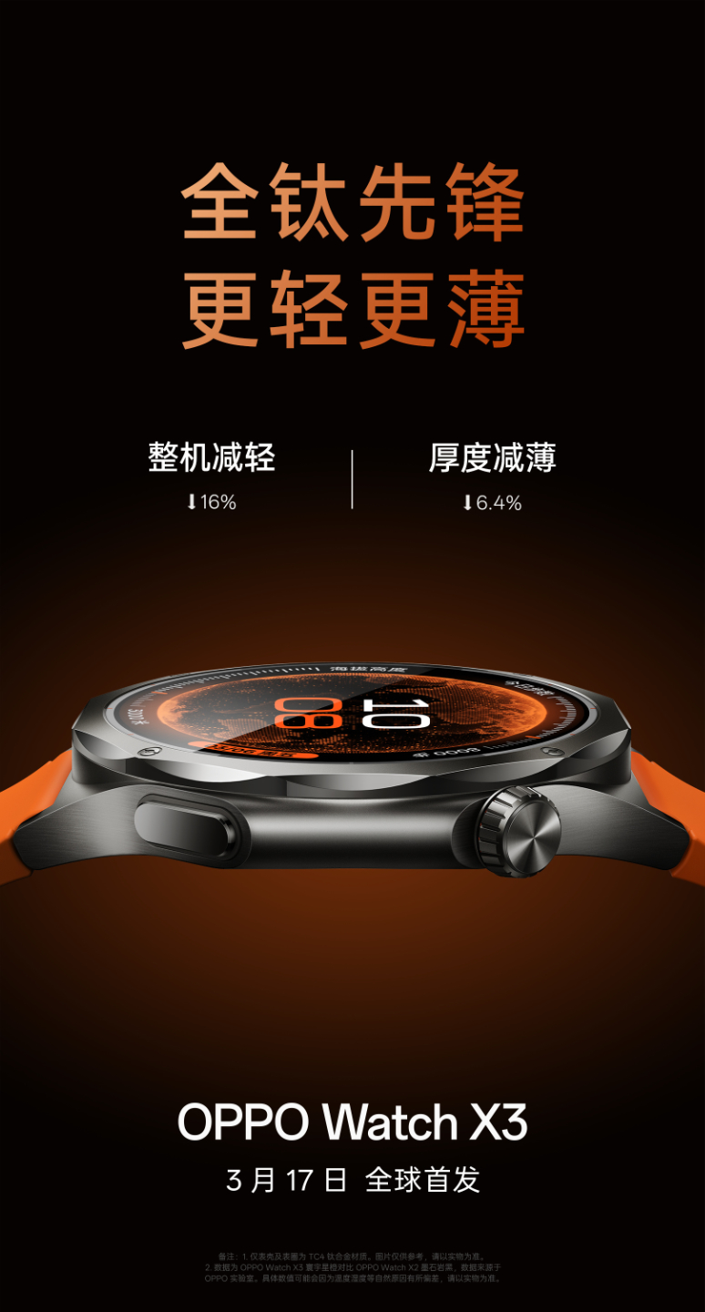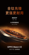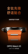Jelenleg a vállalat nem említette a Watch X3-at a kínai közösségi médián kívül. Mégis, a vállalat kínai teaserei arra utalnak, hogy a Watch X3 globális premiert kap március 17-én. Az Oppo továbbá elárulta, hogy az új okosórája 16%-kal könnyebb és 6,4%-kal vékonyabb a Watch X2-hez képest, amely 49,7 grammal és 11,8 mm-rel érkezik.
