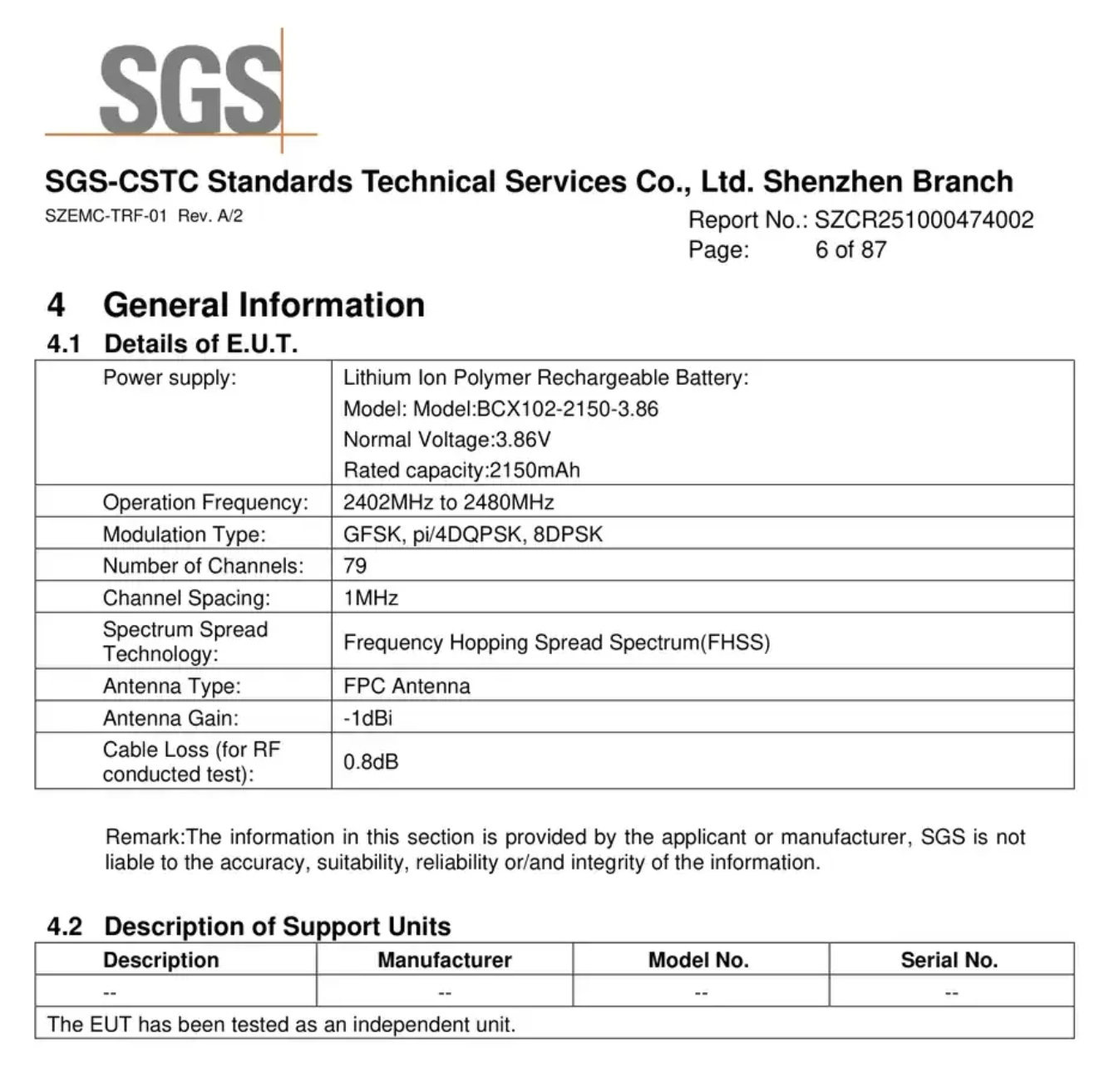 Ahogy az alábbi képen látható, a DJI az Osmo 360 II-t 2150 mAh-s akkumulátorral tanúsította. A felsorolt 3,86 V-os feszültségből arra következtethetünk, hogy ez az akkumulátor is 8,3 Wh energiát tartalmaz. Így az Osmo 360 II-nek körülbelül 10%-kal nagyobb akkumulátorral kell érkeznie, mint elődjének. Az Osmo 360 II egyéb hardveres részletei egyelőre ismeretlenek. A DJI titoktartási levele azonban arra utal, hogy a vállalat reményei szerint az Osmo 360 II-t 2026 májusa vagy júniusa körül fogja piacra dobni.