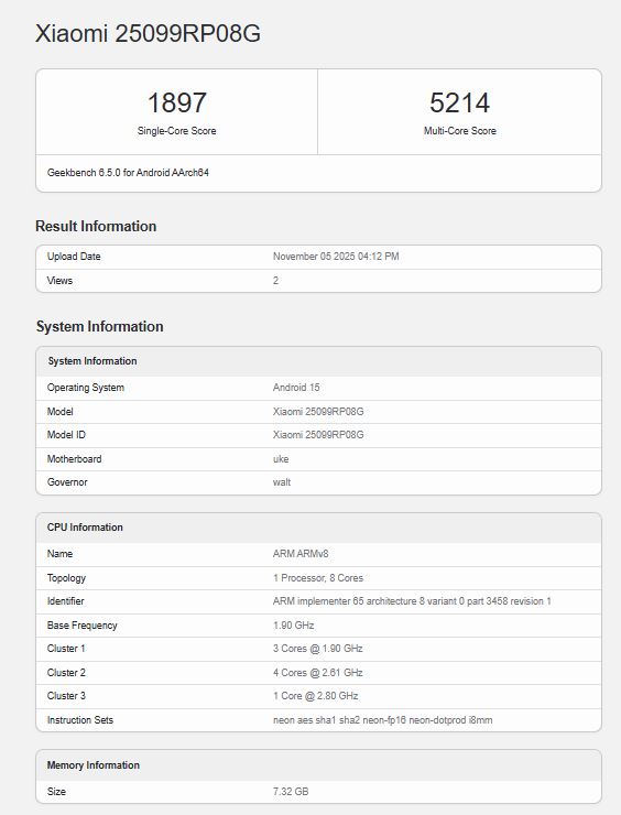 Az új készülék tesztelt pontszámai - 1897 az egymagos tesztben és 5214 a többmagos tesztben - szintén mindkettő a Xiaomi Pad 7-hez képest elérhető távolságon belül van a házon belüli tesztjeinkben. Emellett a listázás megerősíti a 8 GB RAM és a Android 15 jelenlétét a készülékben.
